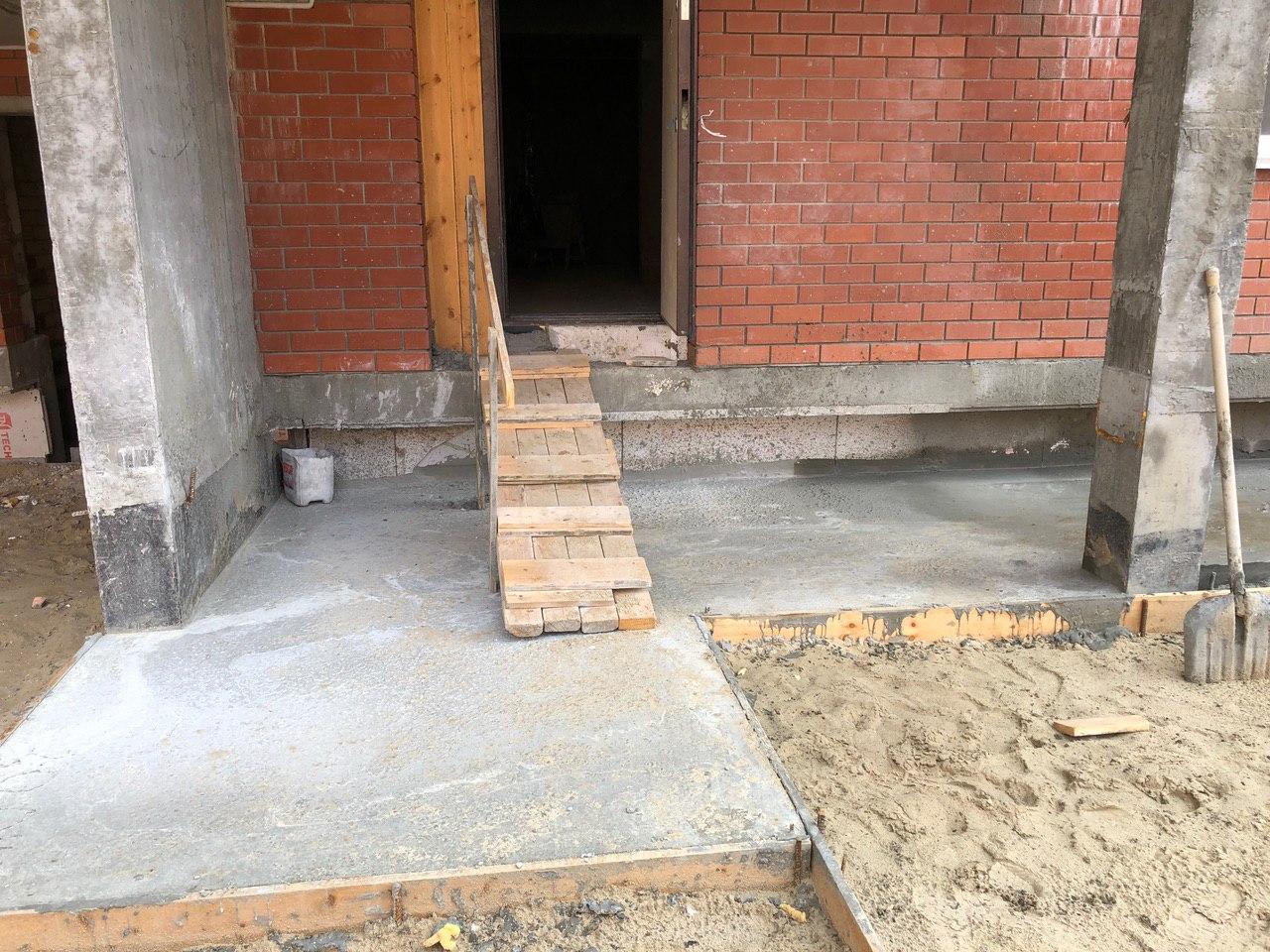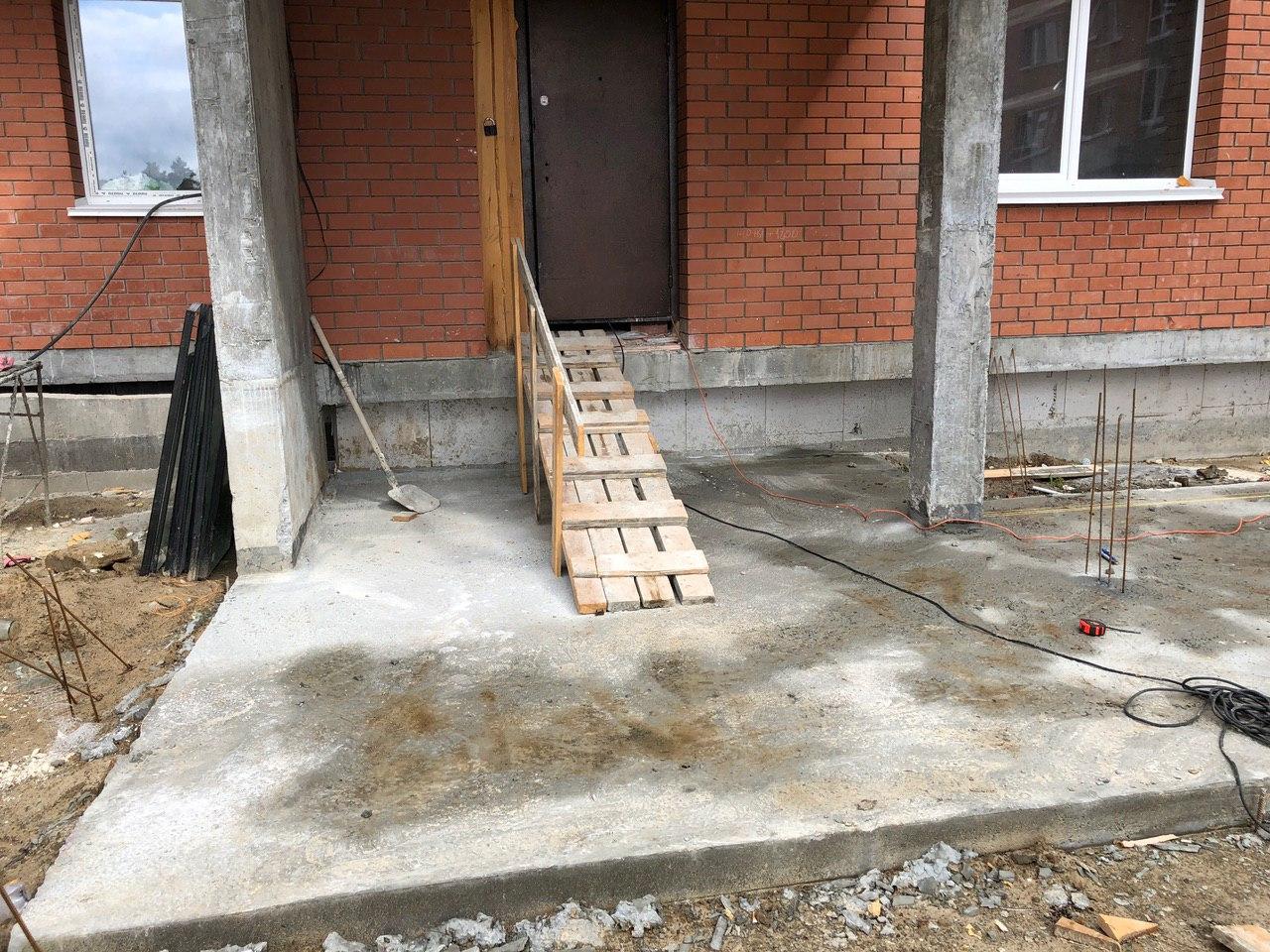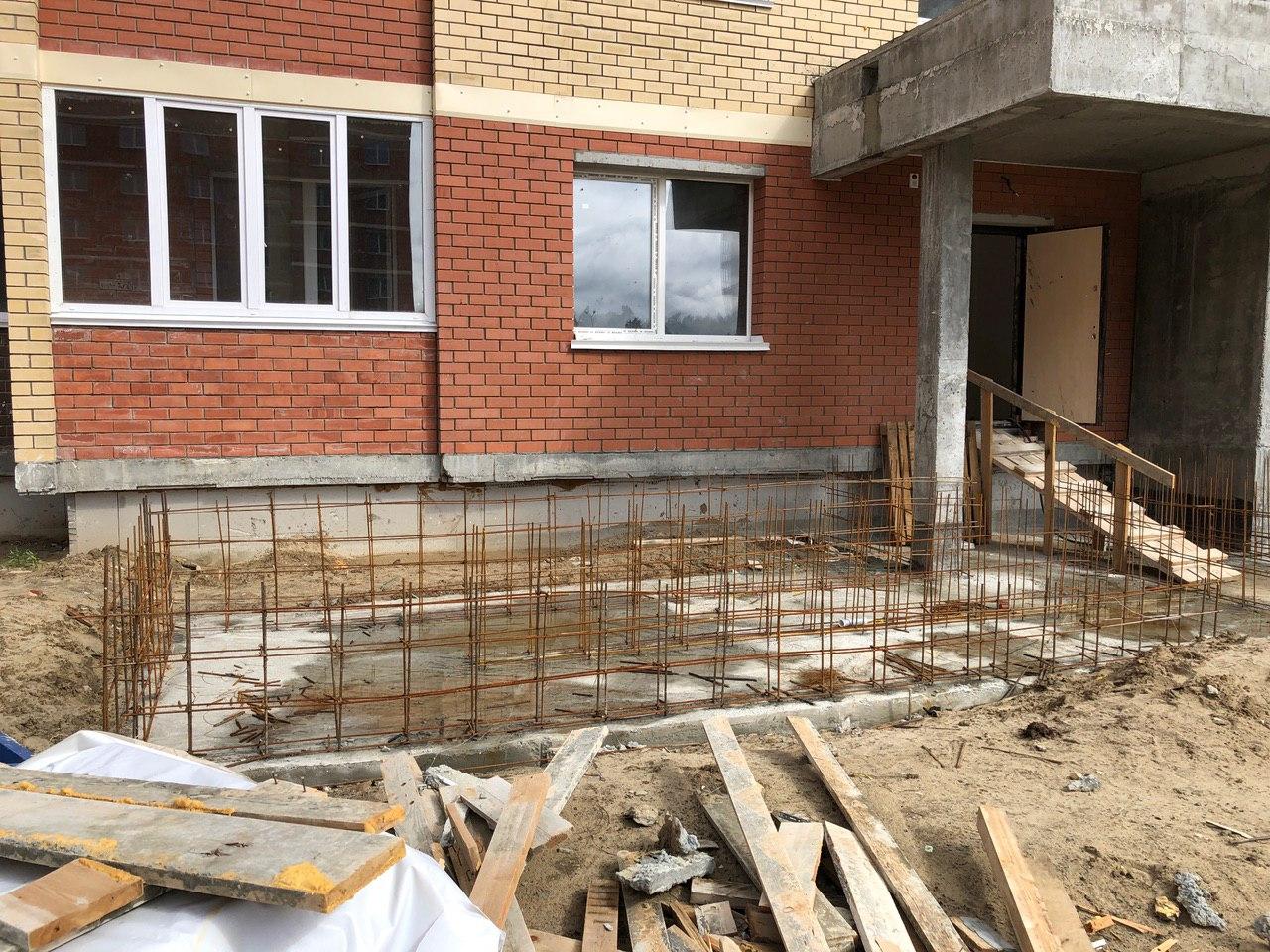 Ведутся работы по устройству входных групп, в том числе устройство подбетонки для крылец.