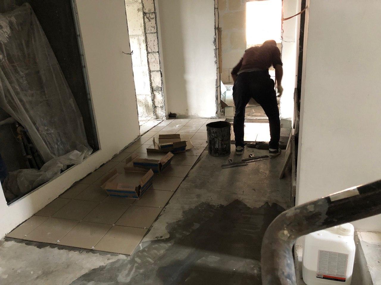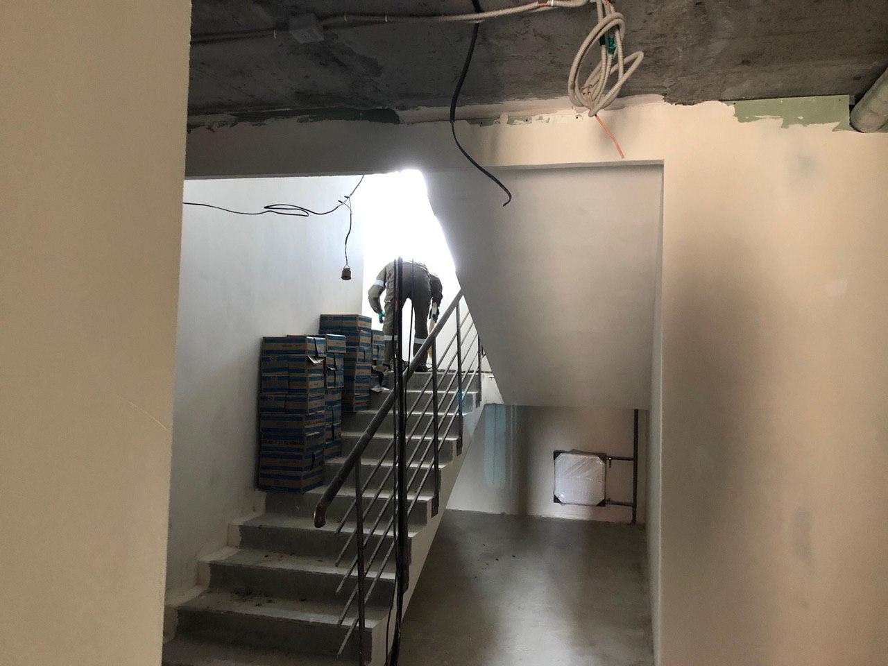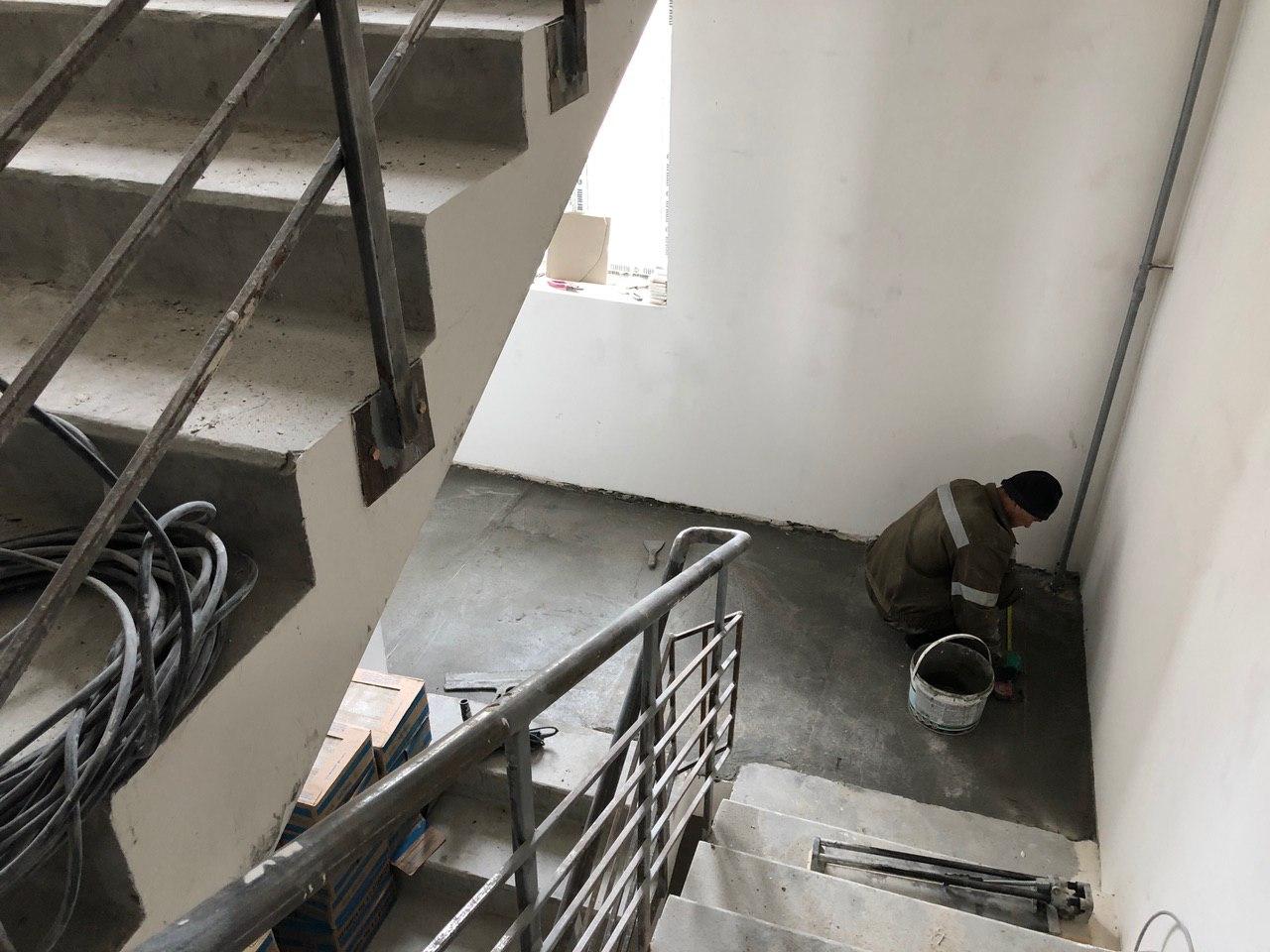 Ведутся внутренние чистовые отделочные работы. В 1 и 2 подъездах ведутся работы по укладке плитки в местах общего пользования, шпатлевка, чистовая покраска мест общего пользования. На строительной площадке находится порядка 60 человек. Ведется установка входных дверей в квартиры.