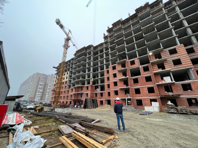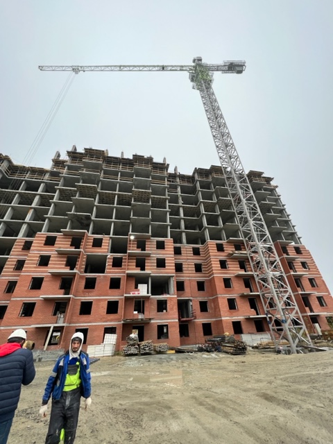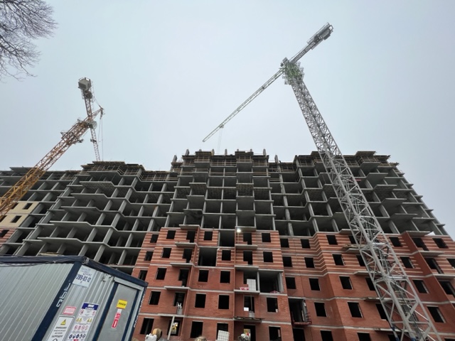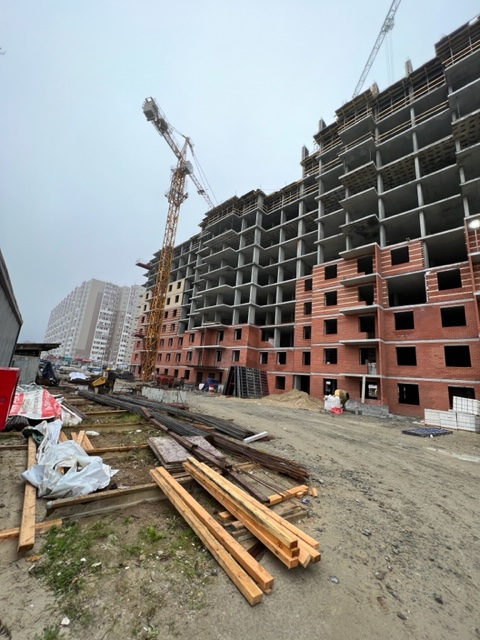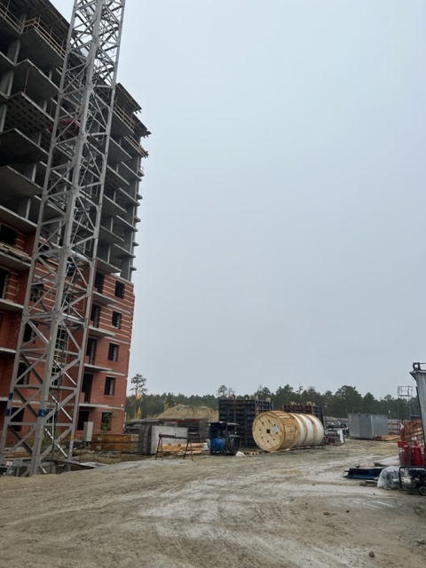 На строительной площадке ведутся строительно-монтажные работы.