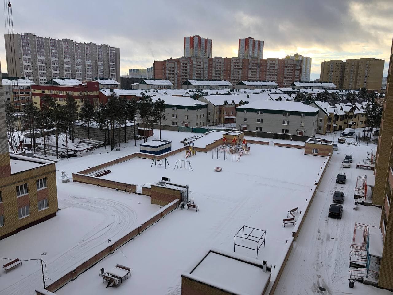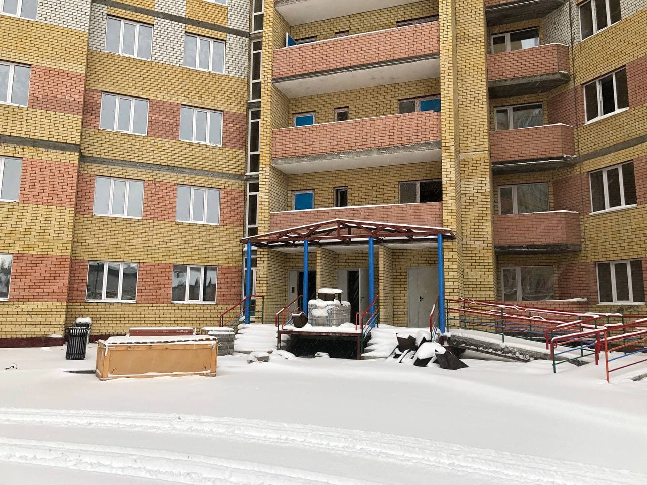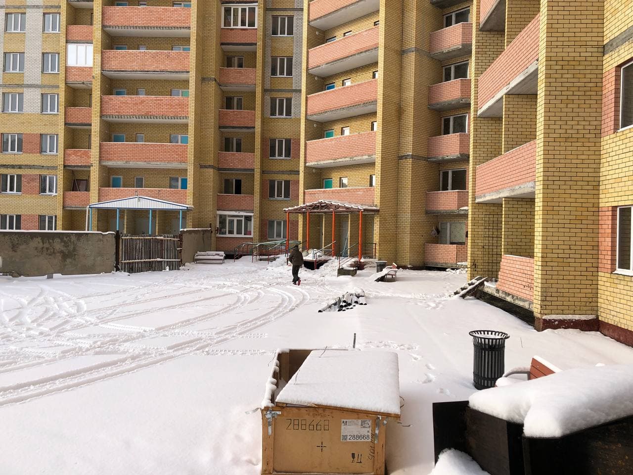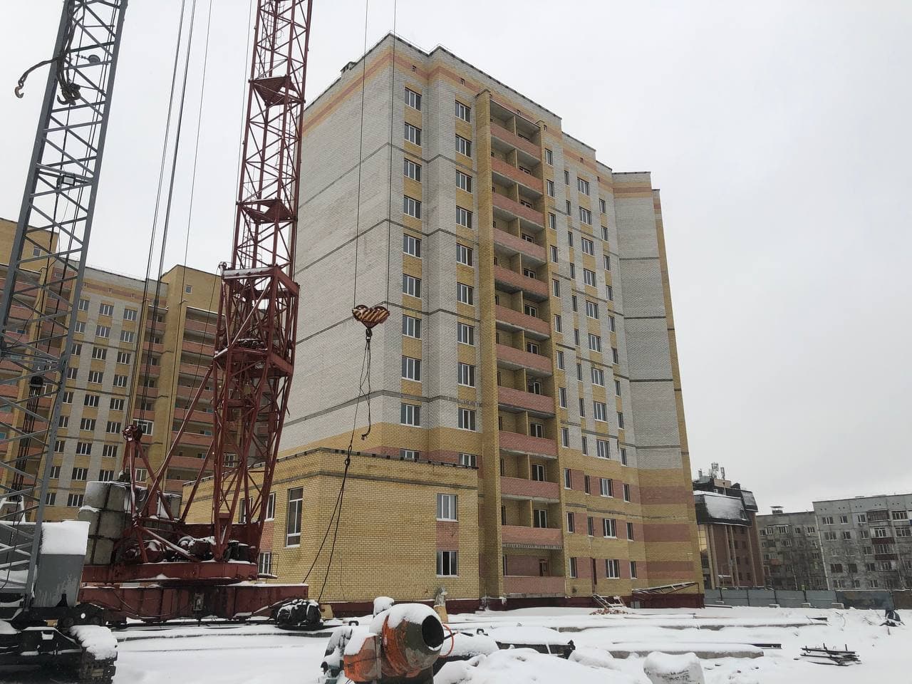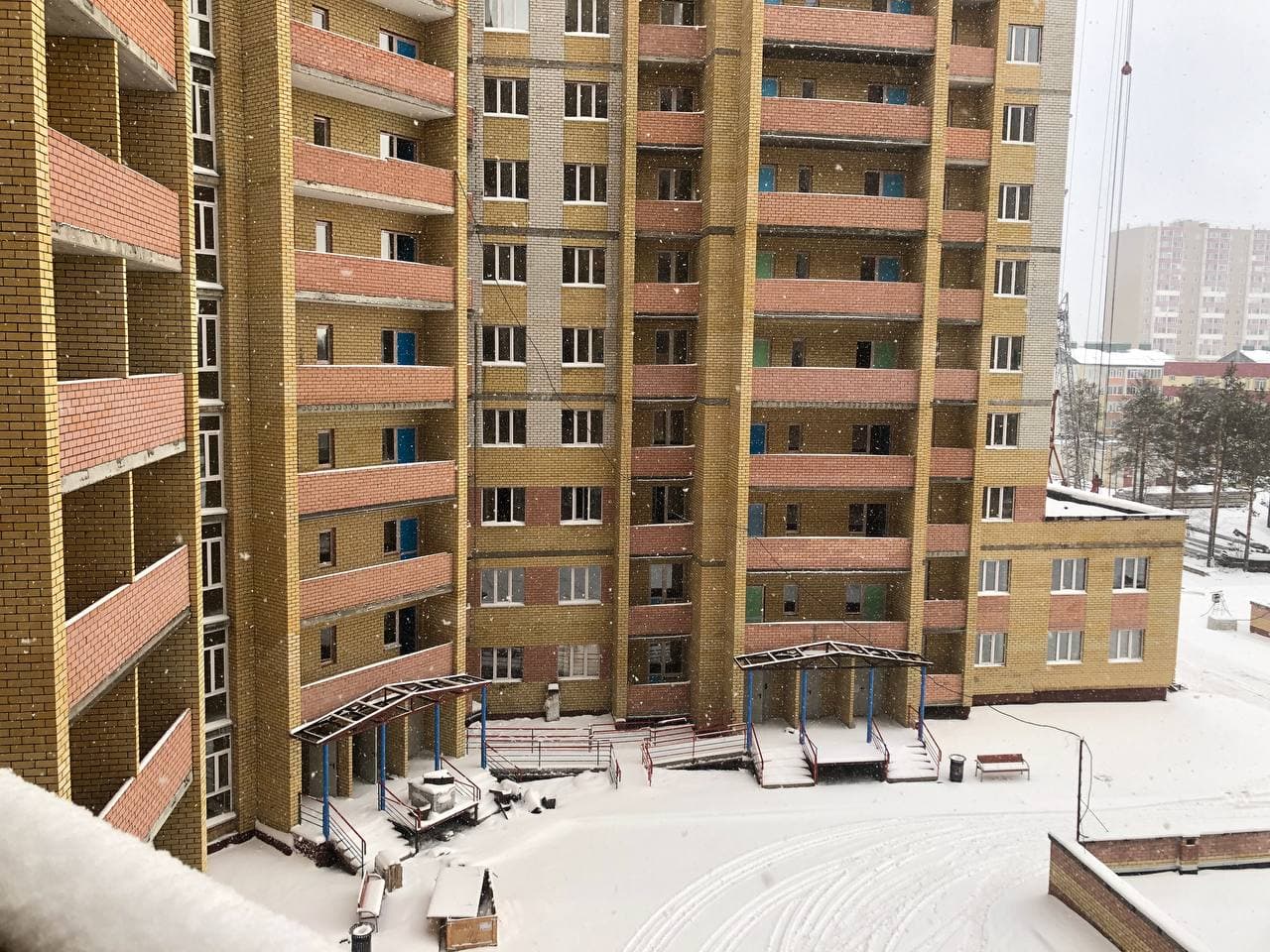 В 5-6 подъездах ведутся отделочные работы, укладка плитки в МОП, сборка кранов для подачи отопления, установка радиаторов отопления в квартирах, установка плафонов в МОП, монтаж лифта в 6 подъезде;