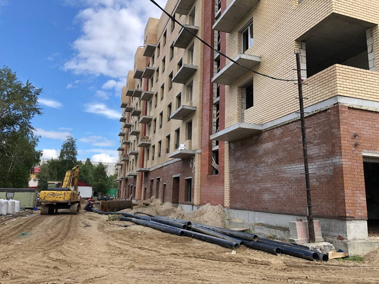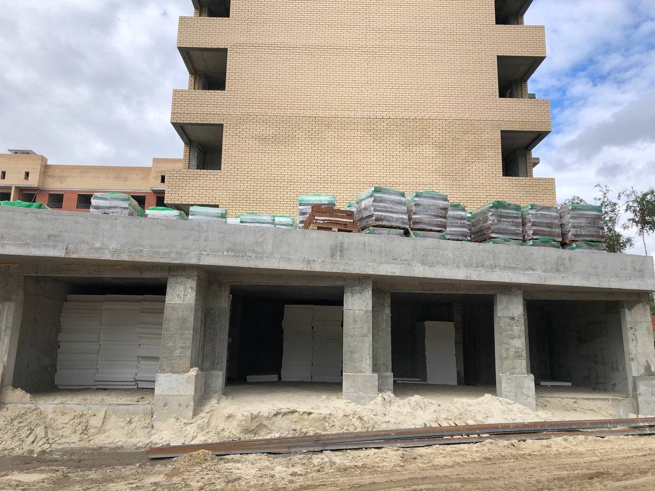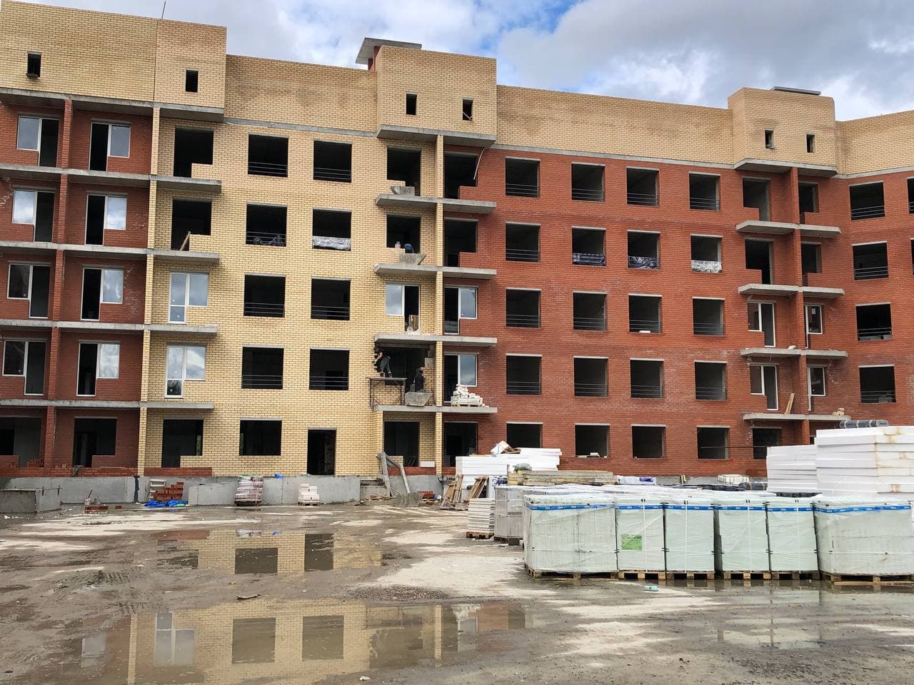 Продолжаются работы по устройству многослойной стены. Устройство перегородок из пазогребневой плиты. Монтаж внутренней электропроводки. Устройство монолитных входных групп с плиты паркинга. Подготовка песчаного основания под полы первого этажа. Монтаж воздуховодов вентиляции. Монтаж оконных конструкций. Монтаж защитных решеток на окна. Монтаж стояков канализации и ХГВС. Проводятся работы по устройству кровельного пирога. Ведутся работы по монтажу колодцев и прокладке канализационных систем. Ведутся работы по реконструкции наружных сетей. Общестроительные работы.