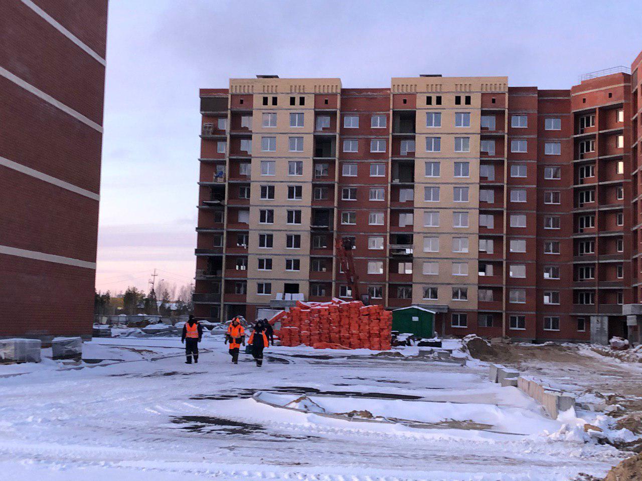Ведутся земляные работы для укладки наружных и внутренних инженерных сетей (горячего и холодного водоснабжения). Проводятся работы по проводке электрических сетей внутри жилого дома. Работают экскаватор и бульдозер.