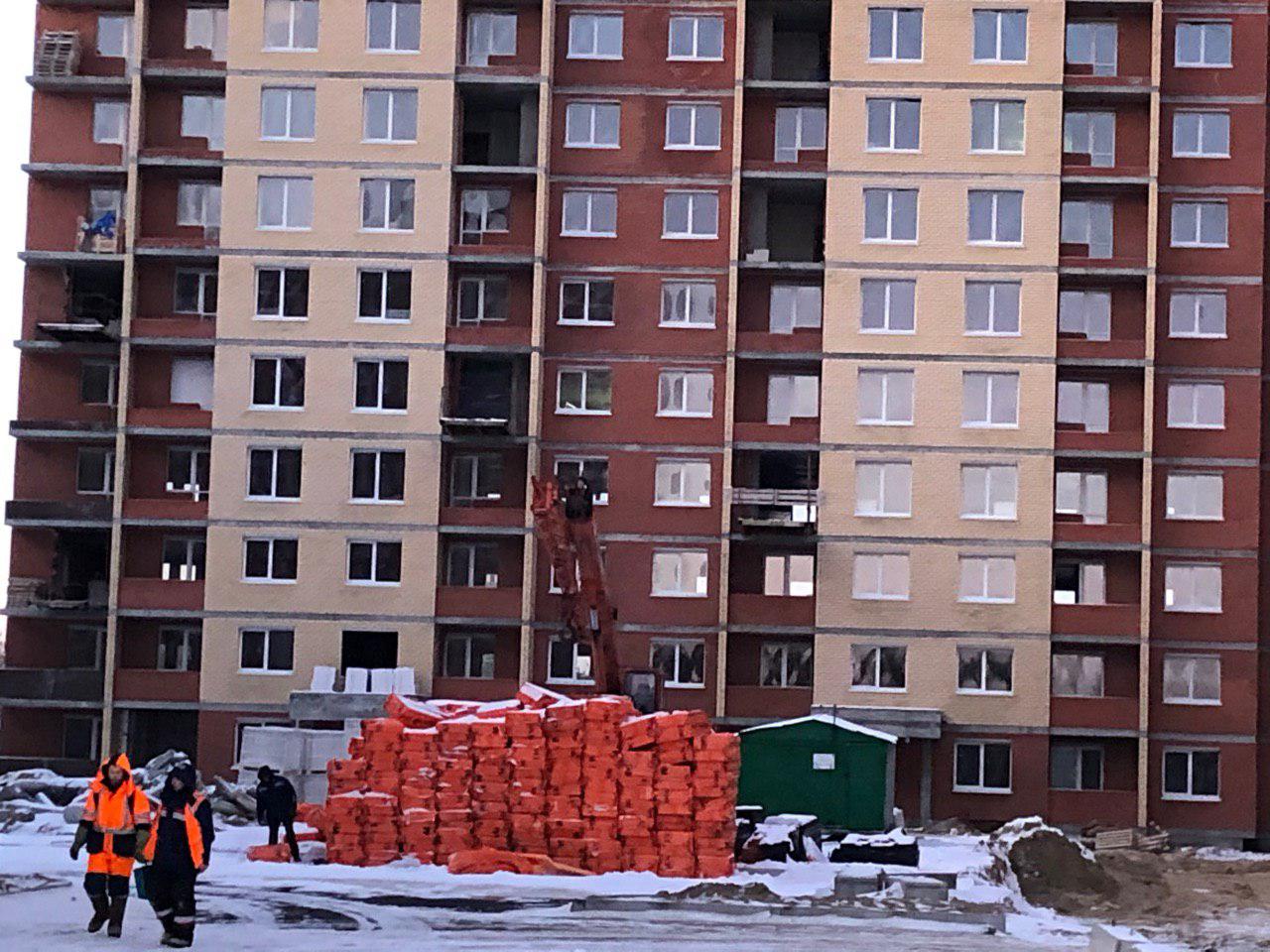 Ведется монтаж перегородок внутри дома, подъем материалов/