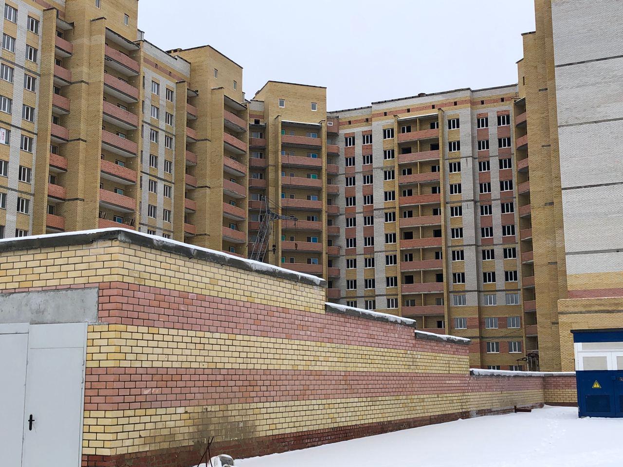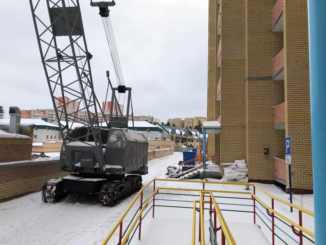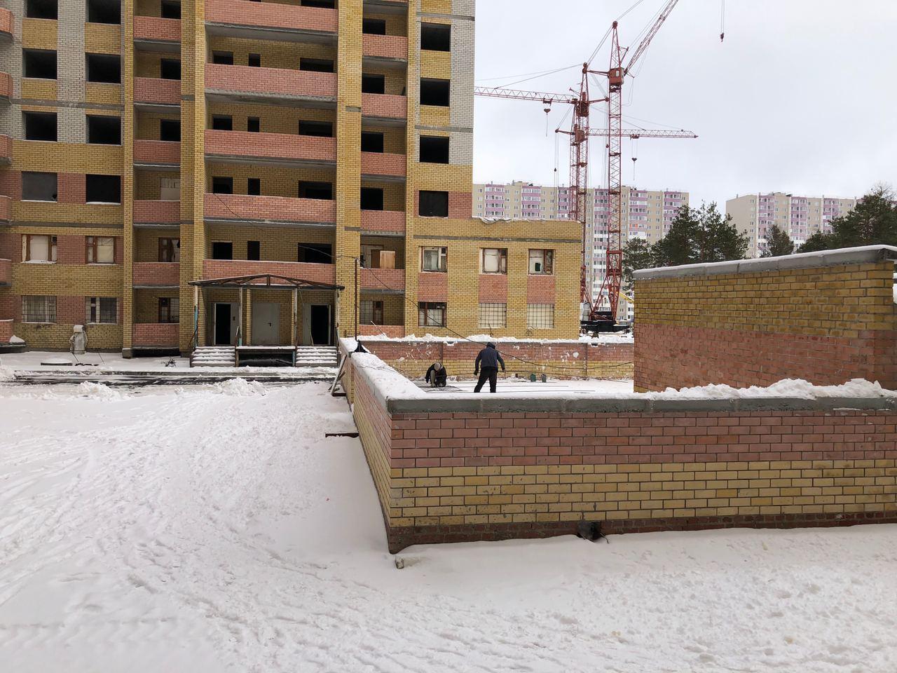 На строительной площадке первых четырех подъездов находятся ориентировочно 5-10 рабочих.
