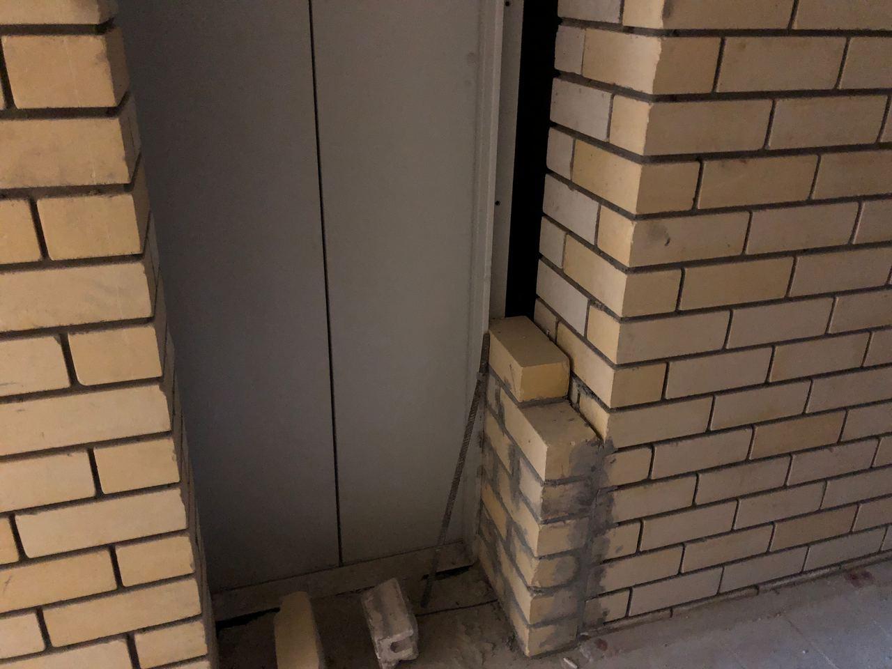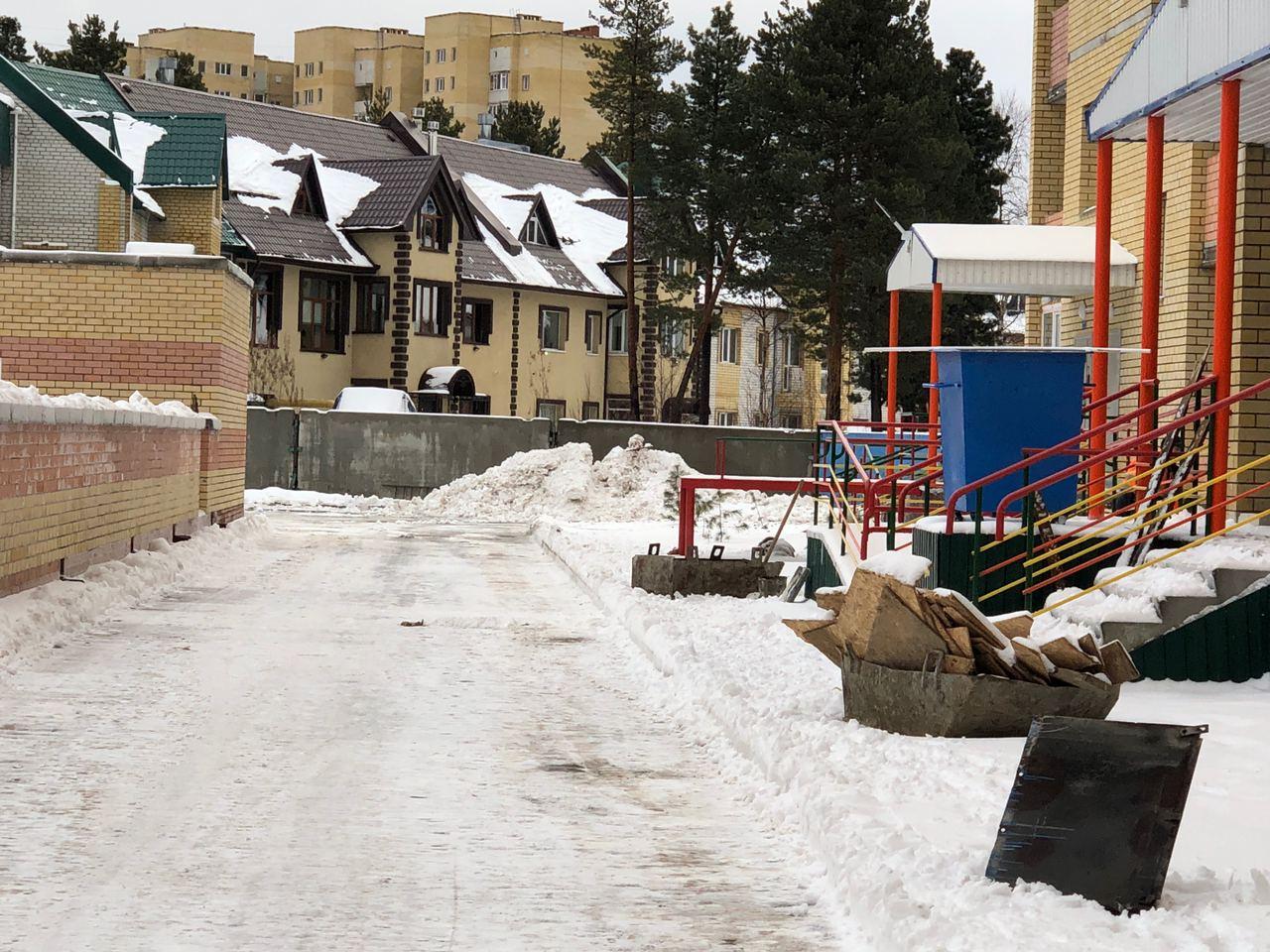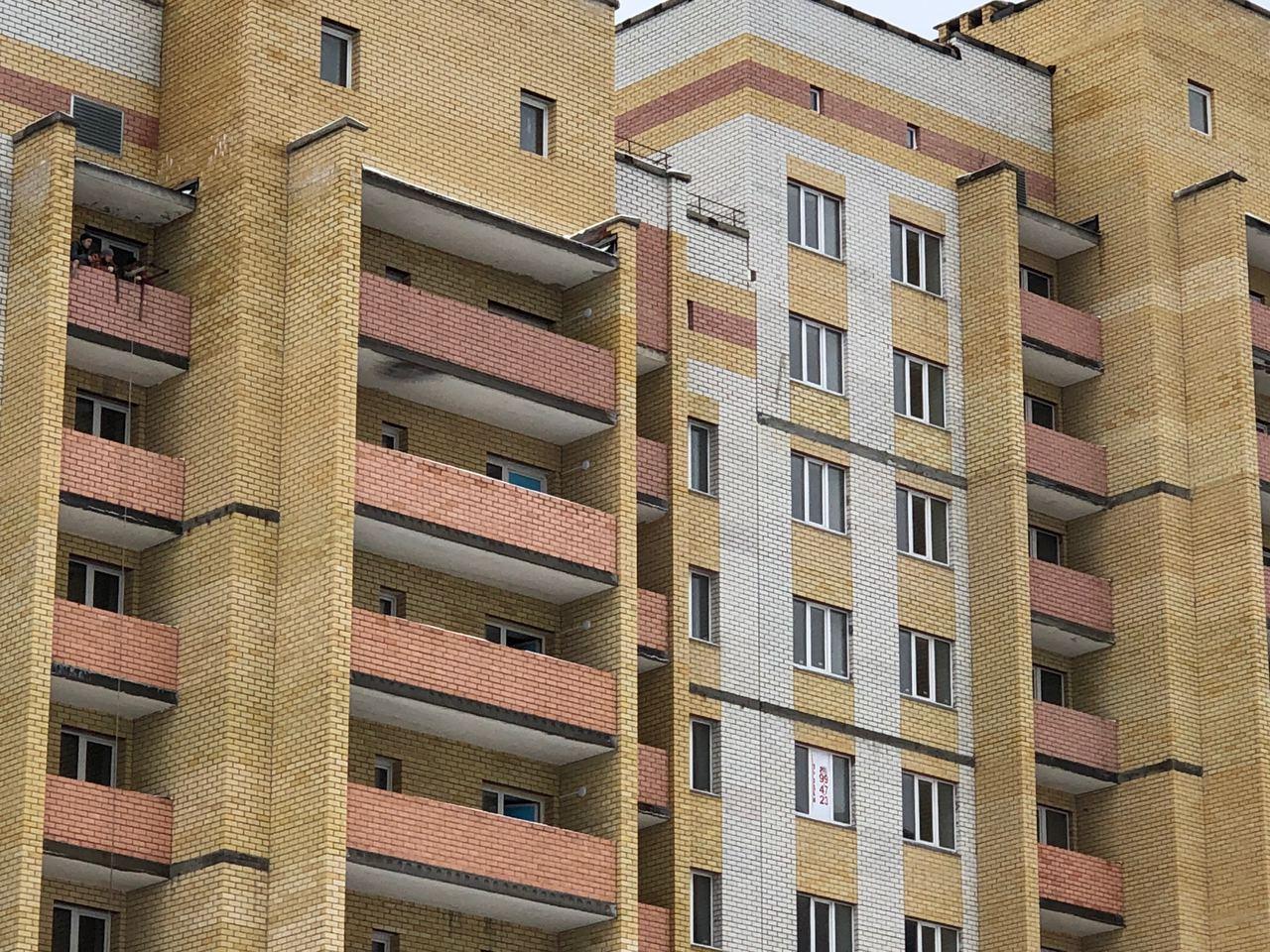 На строительной площадке первых четырех подъездов находятся ориентировочно 5-10 рабочих.