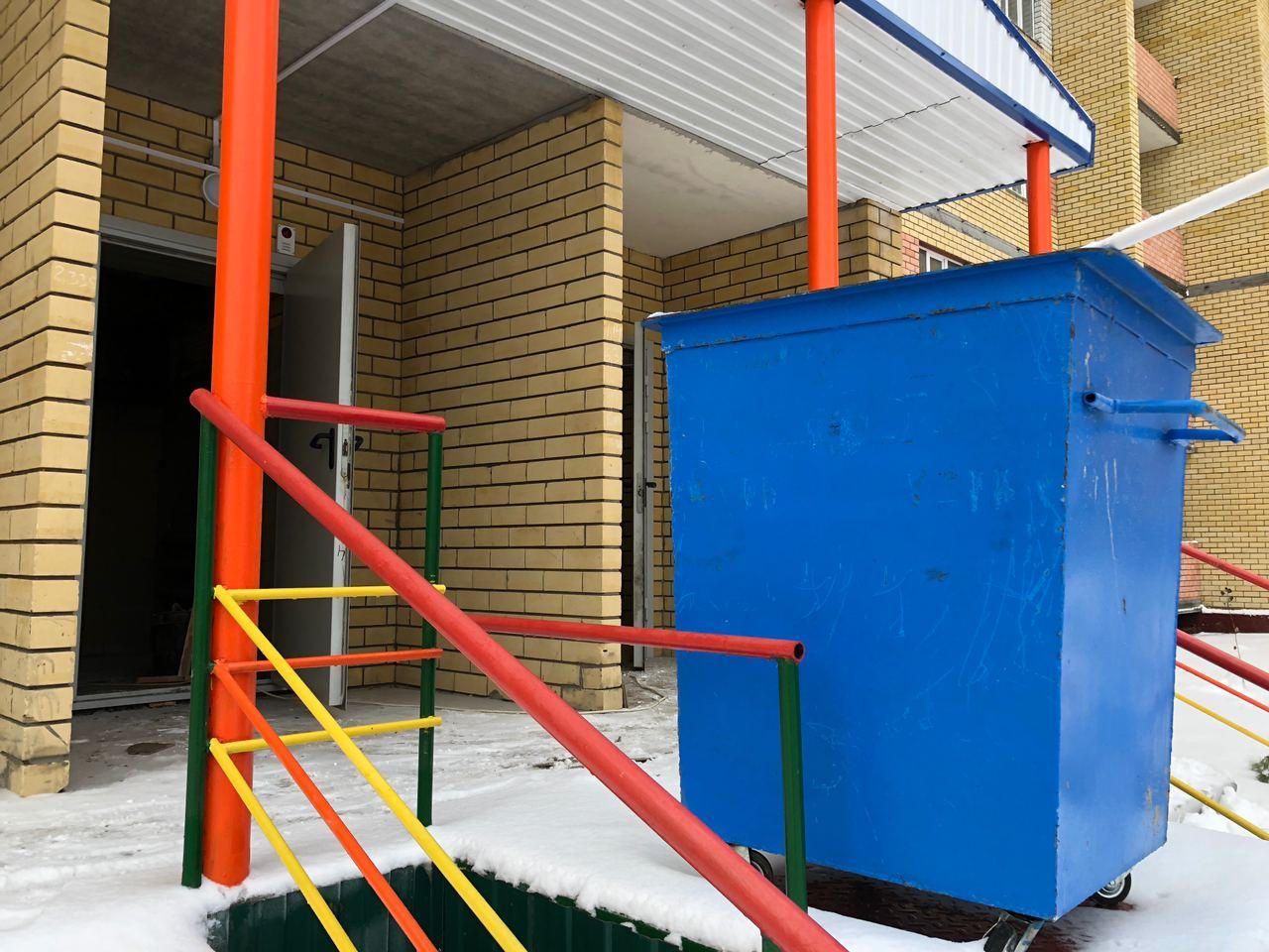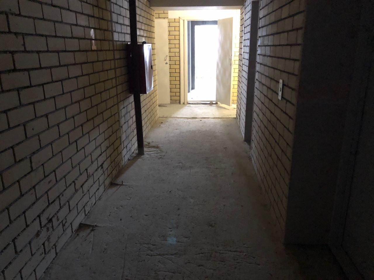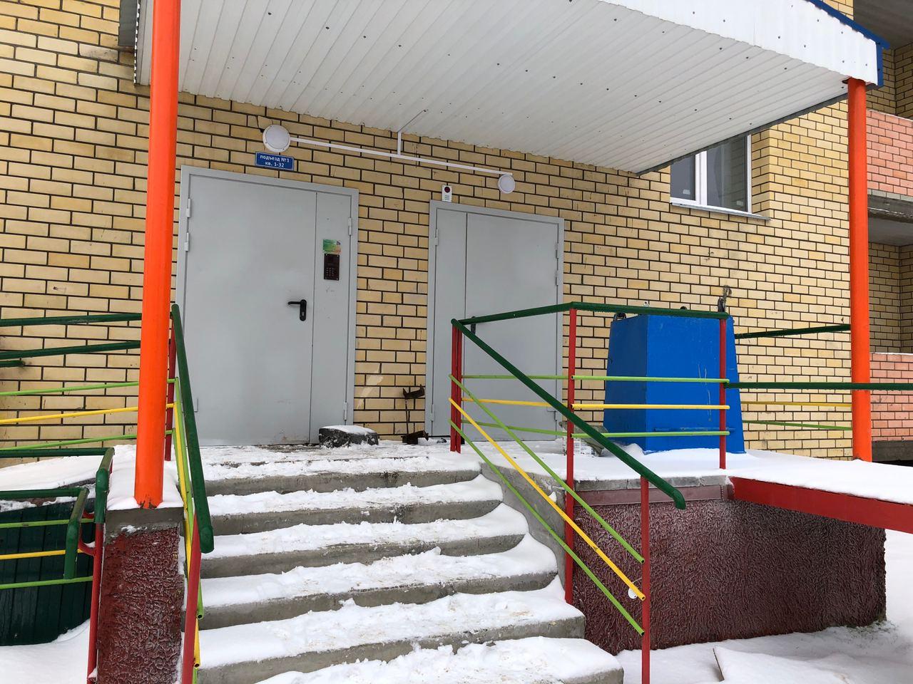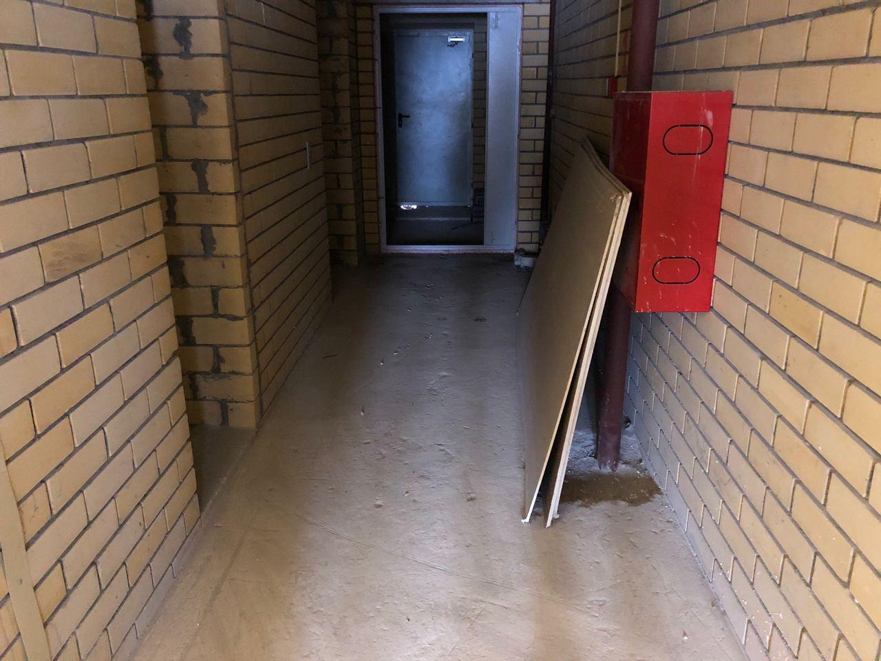 В первом подъезде ведется уборка квартир, двери в подъезд открыты.