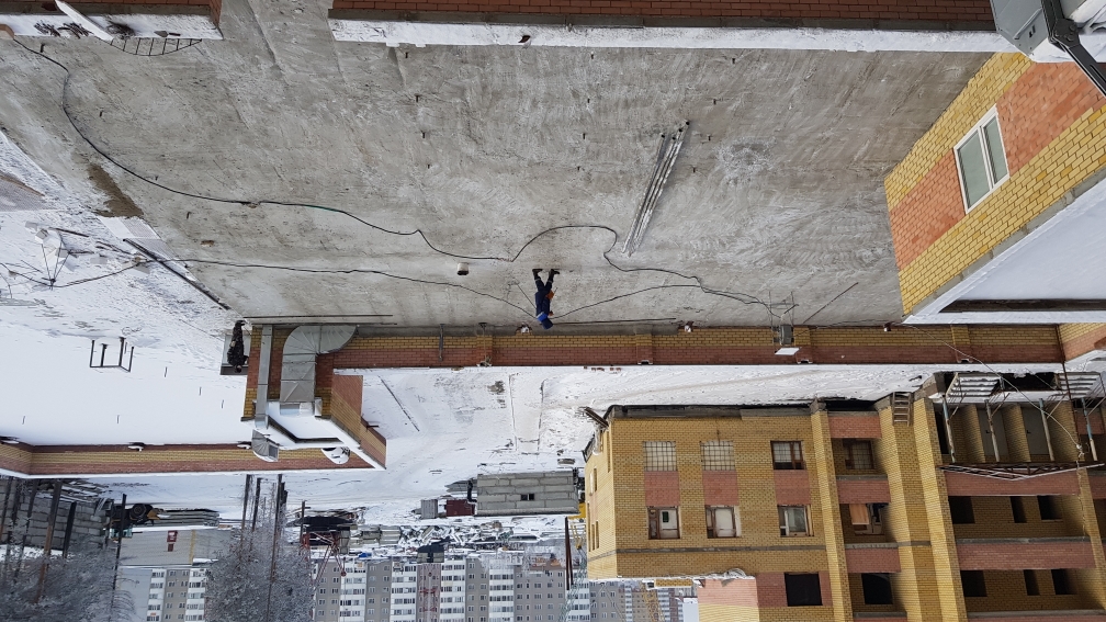 На строительной площадке первых четырех подъездов находятся ориентировочно 20-25 рабочих.