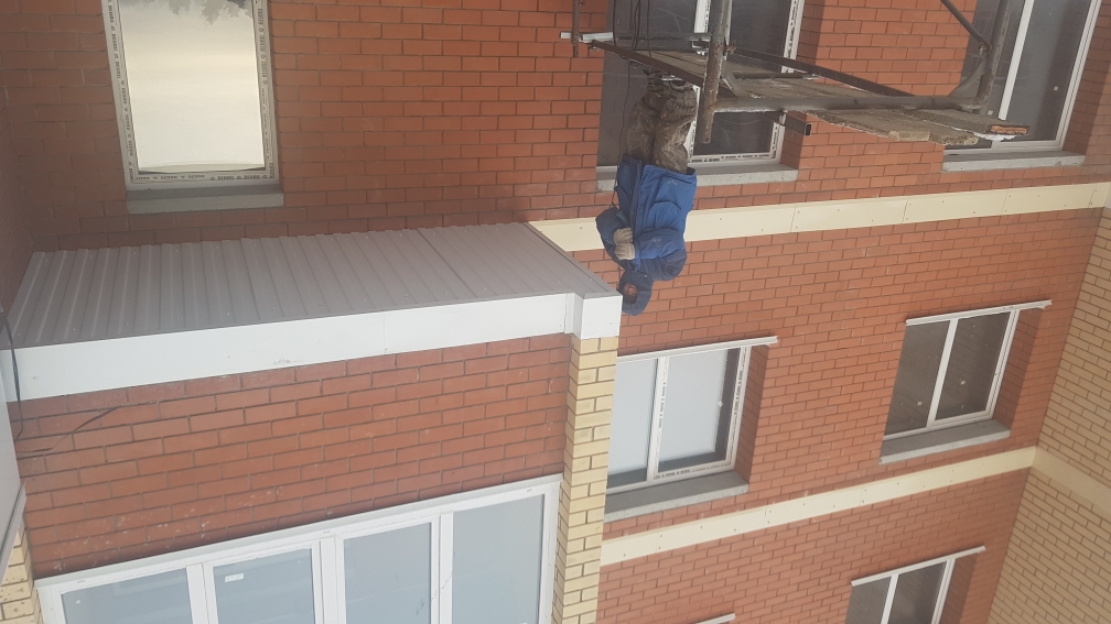 Проводятся наружные работы по обшивке козырьков входных групп.