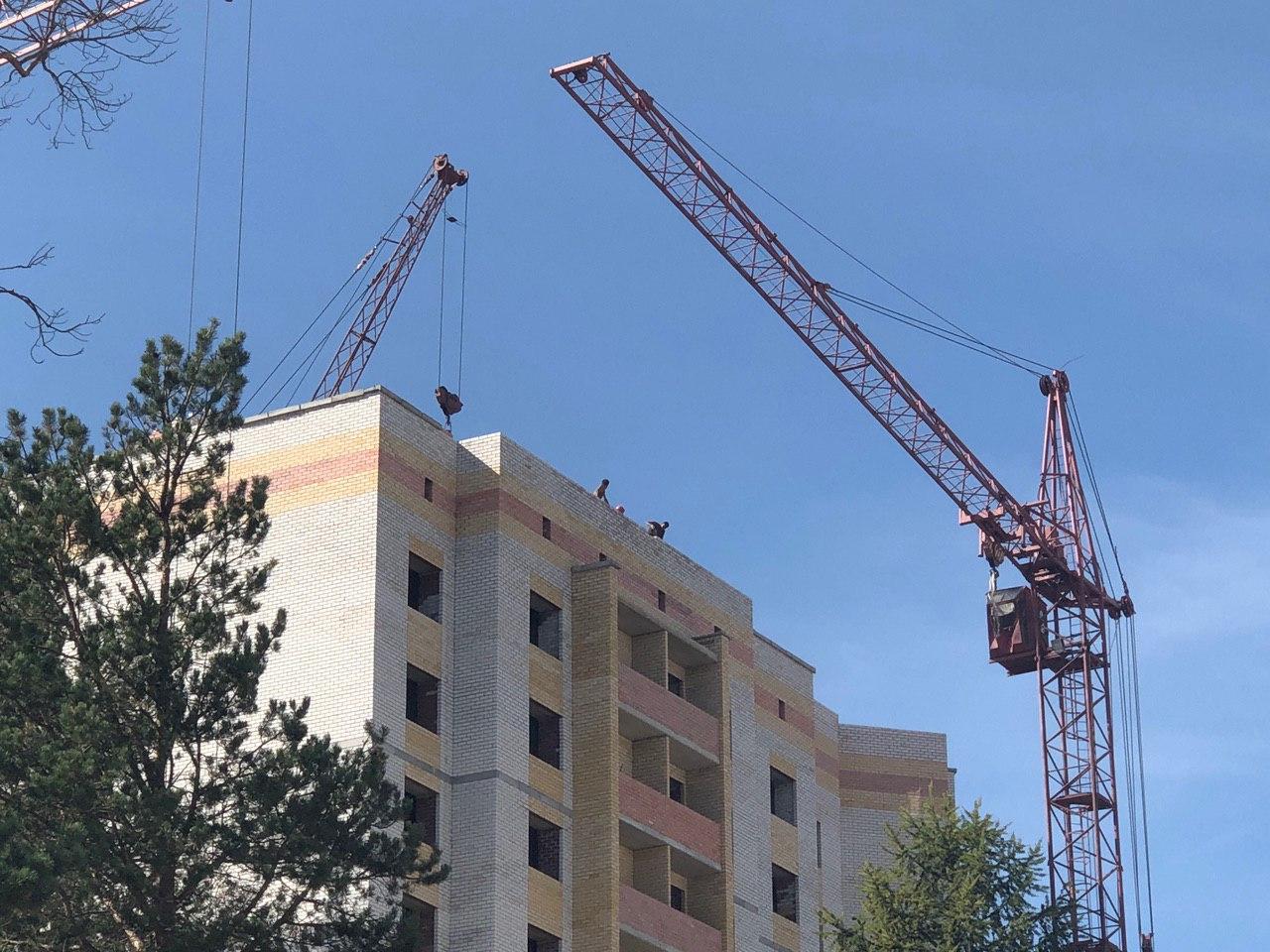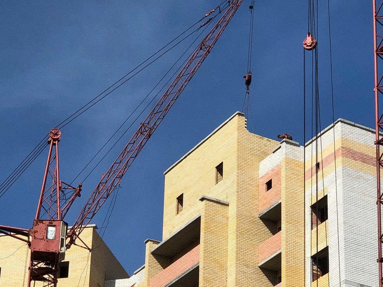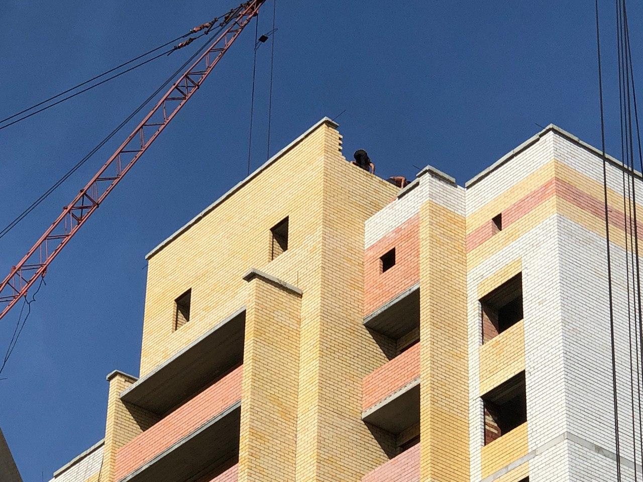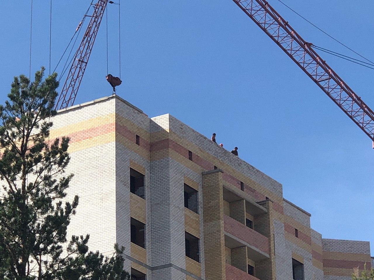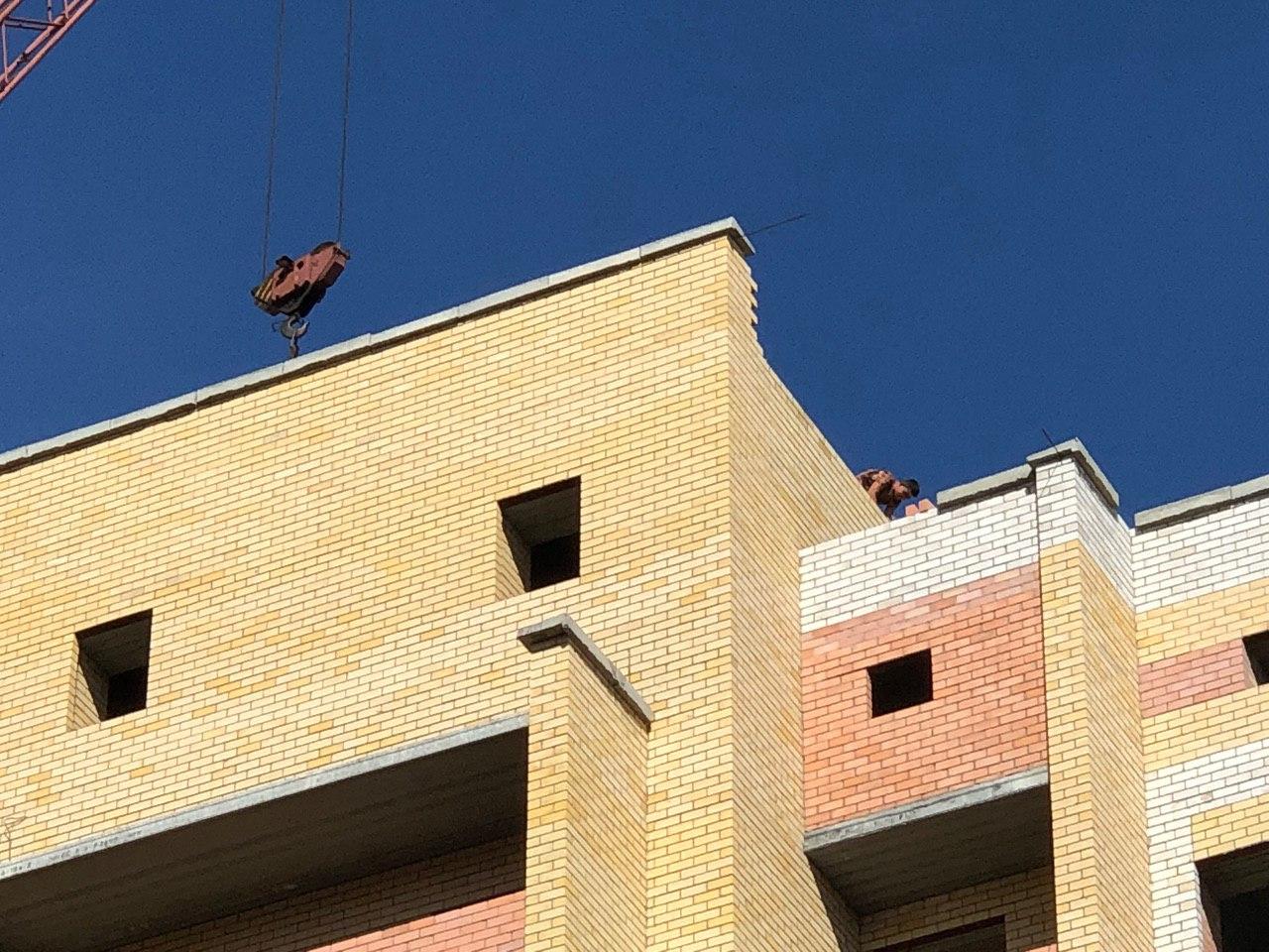 Ведутся работы по возведению последнего этажа 8 секции силами 3 рабочих, работает кран.