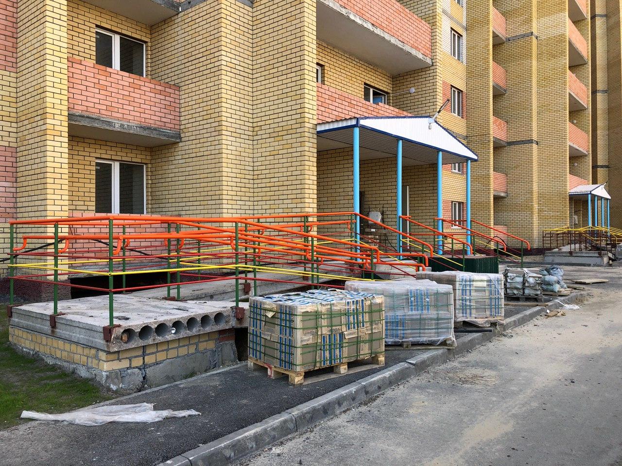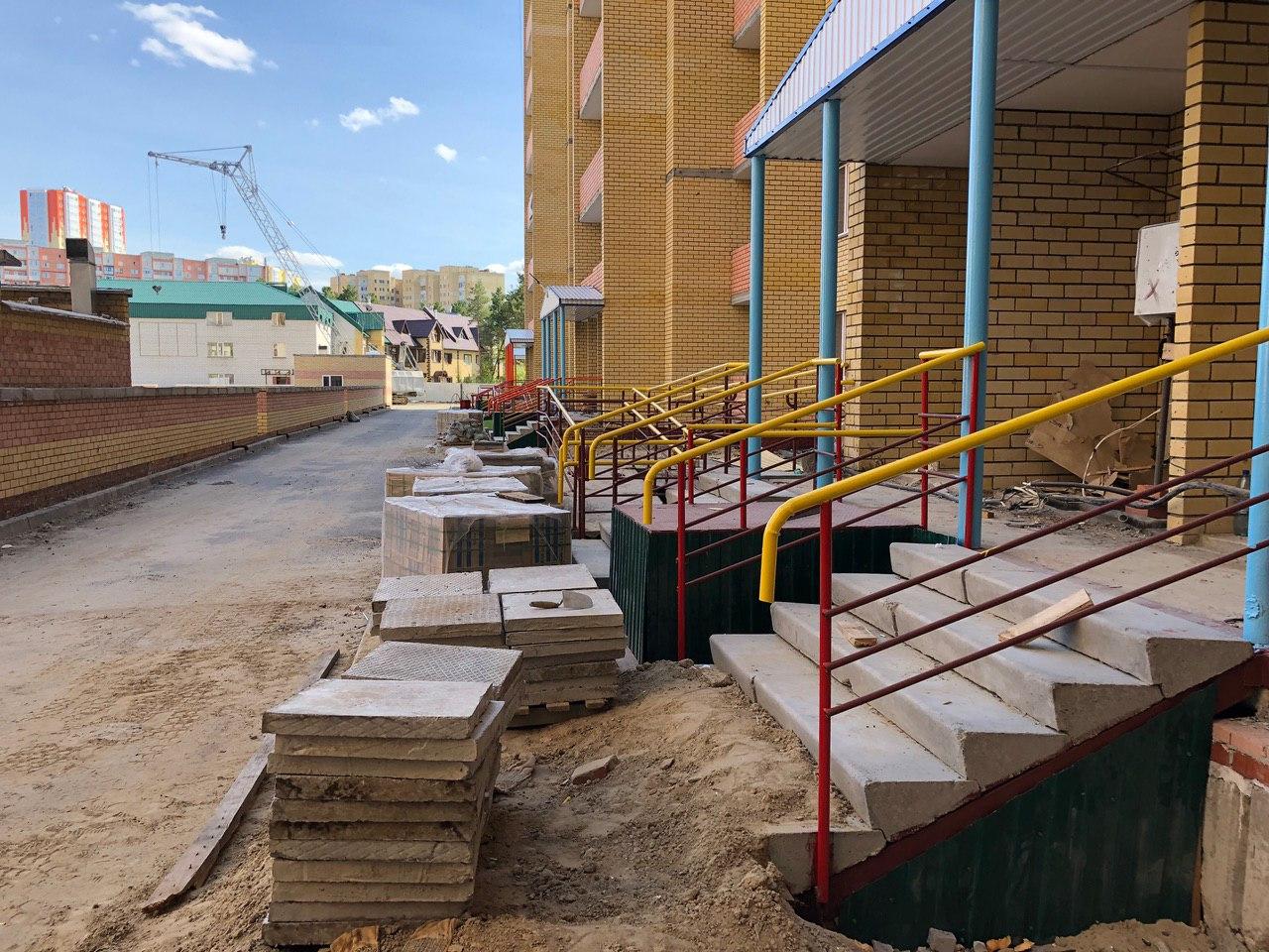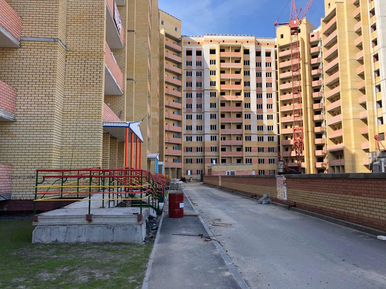 На строительной площадке первых четырех подъездов находятся 2 рабочих (отделочник и маляр).