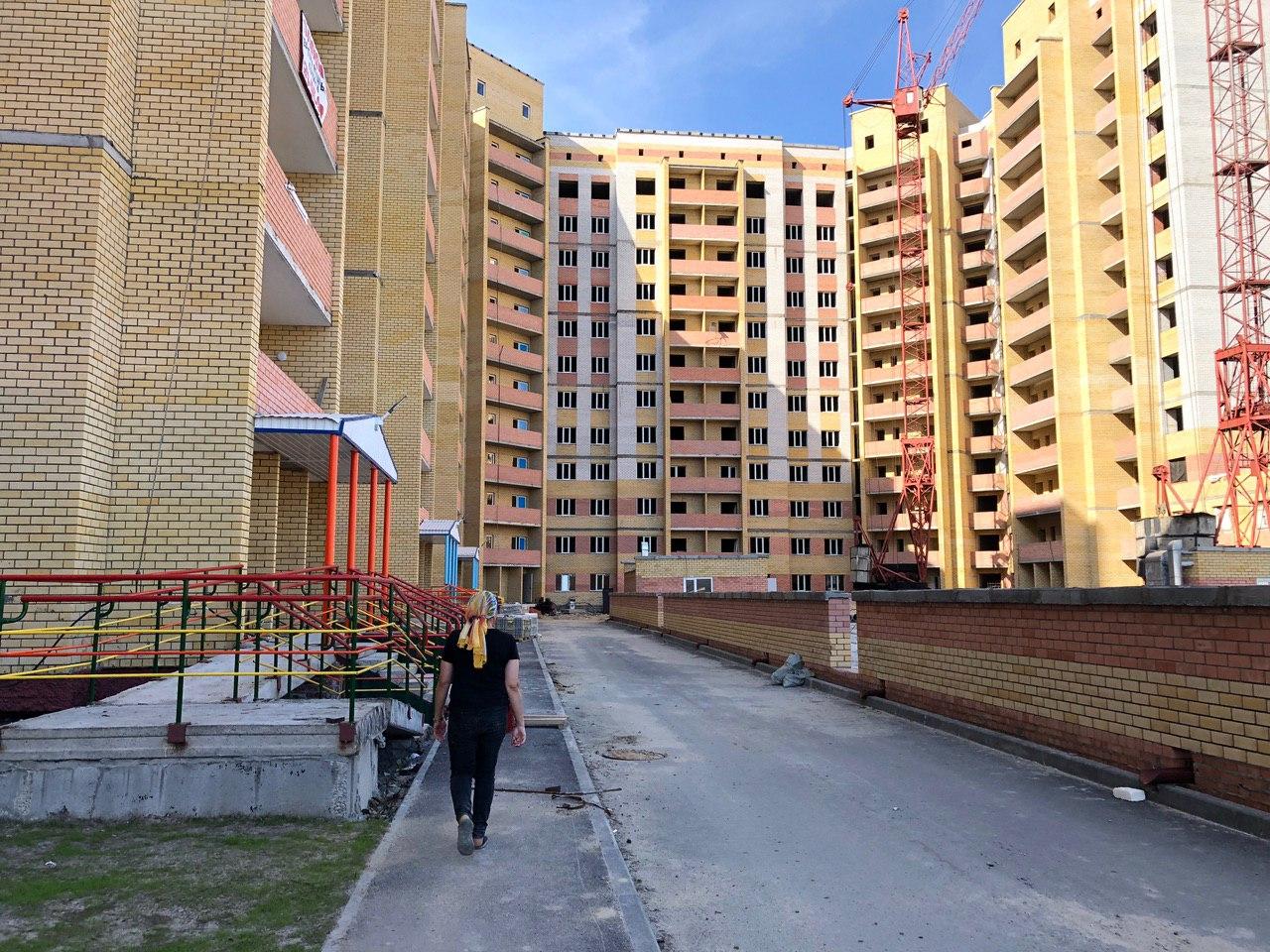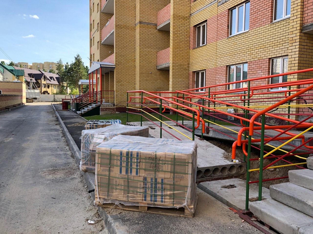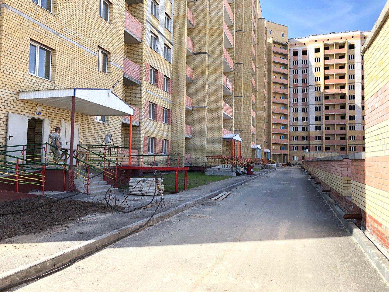 На строительной площадке первых четырех подъездов находятся 2 рабочих (отделочник и маляр).