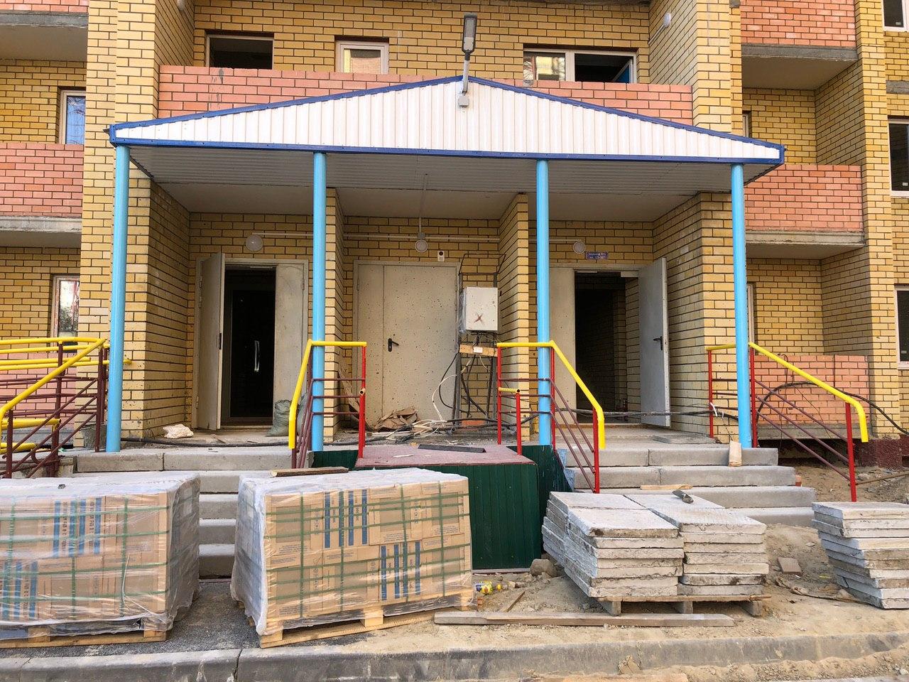 В четвертом подъезде работы не ведутся, дверь открыта. Внутри работы за прошедшее время не производились. Произведена частичная окраска крыльца.