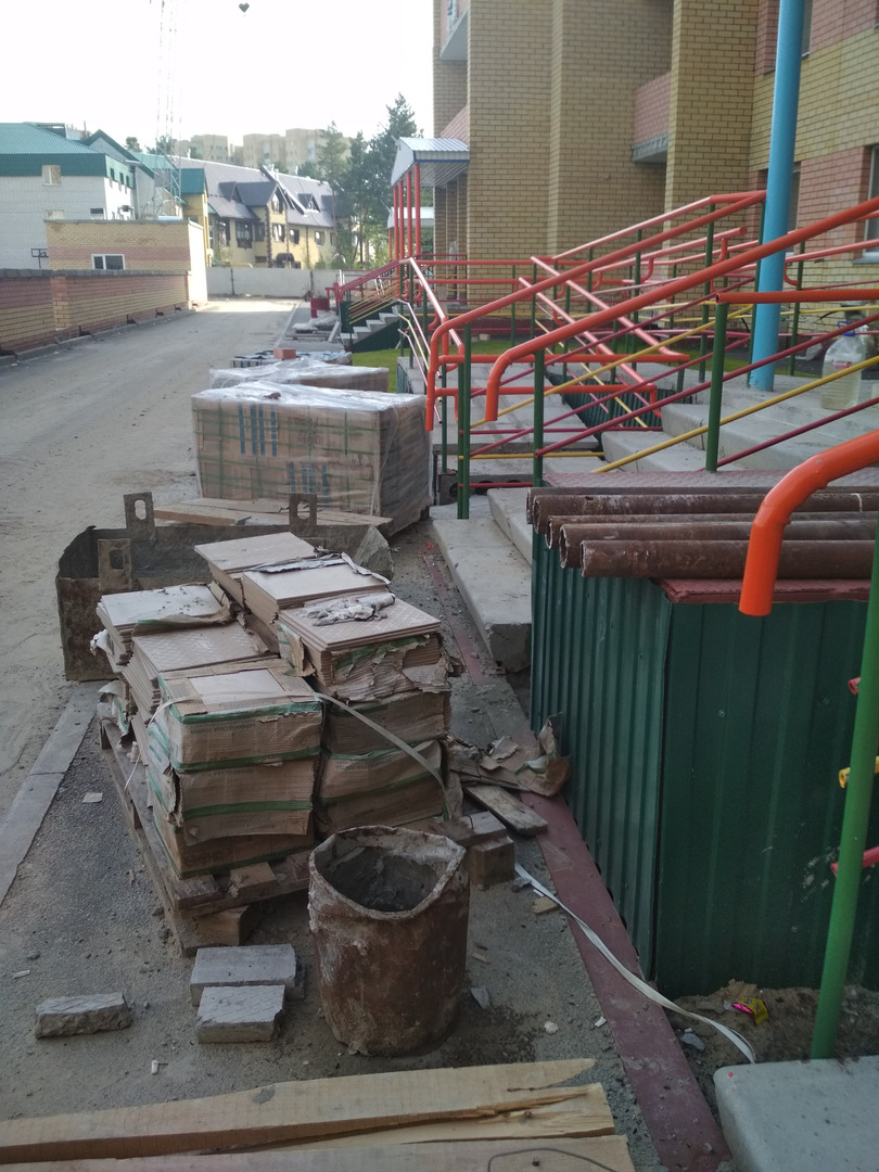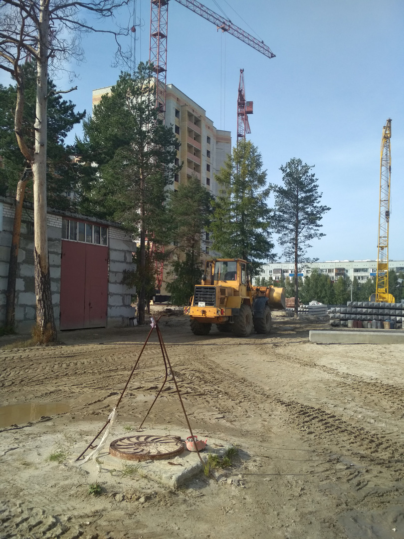 На строительной площадке первых четырех подъездов находятся 8 рабочих.