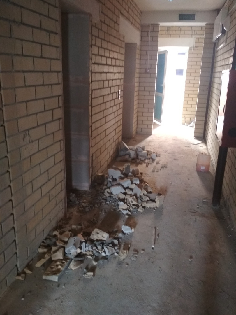 В первом подъезде работы не ведутся, дверь открыта.