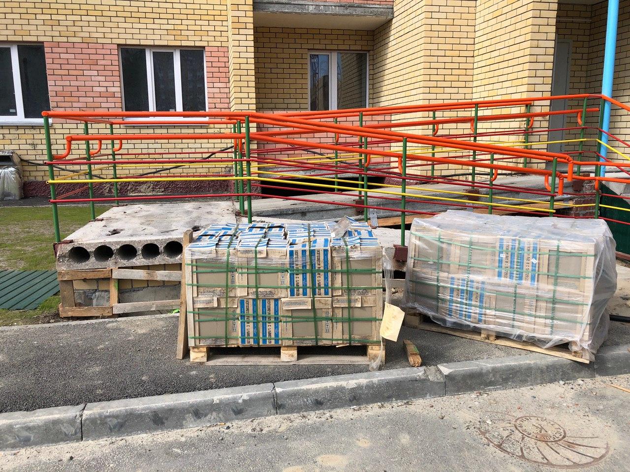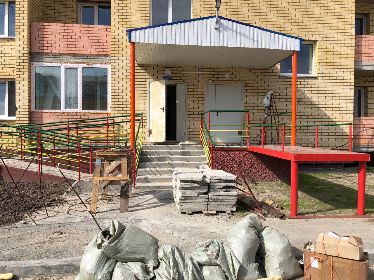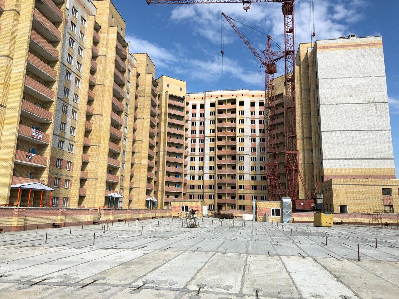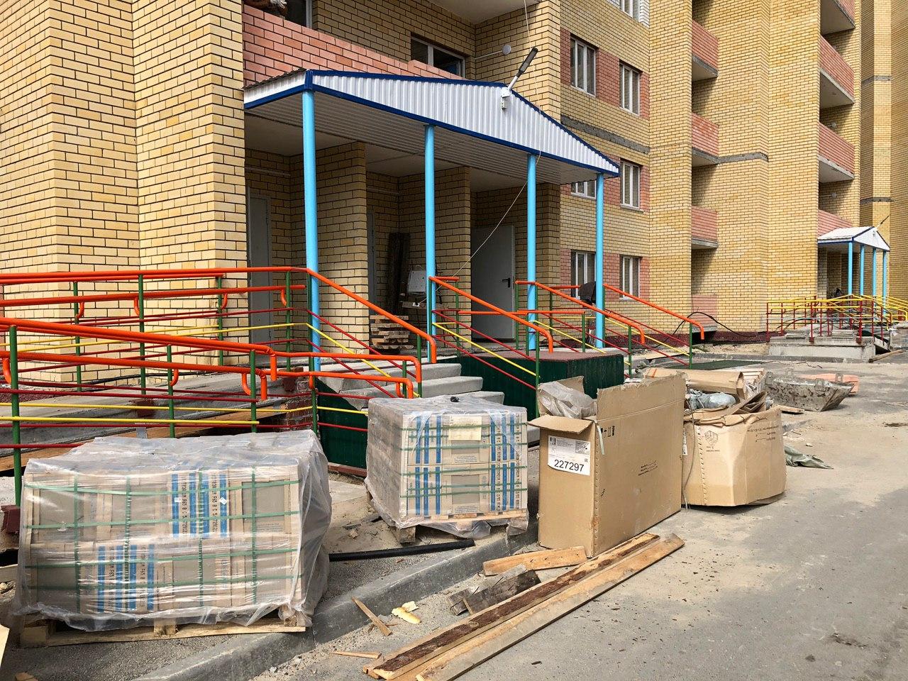 На строительной площадке первых четырех подъездов находятся 4 рабочих.
