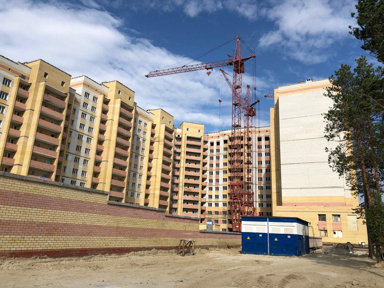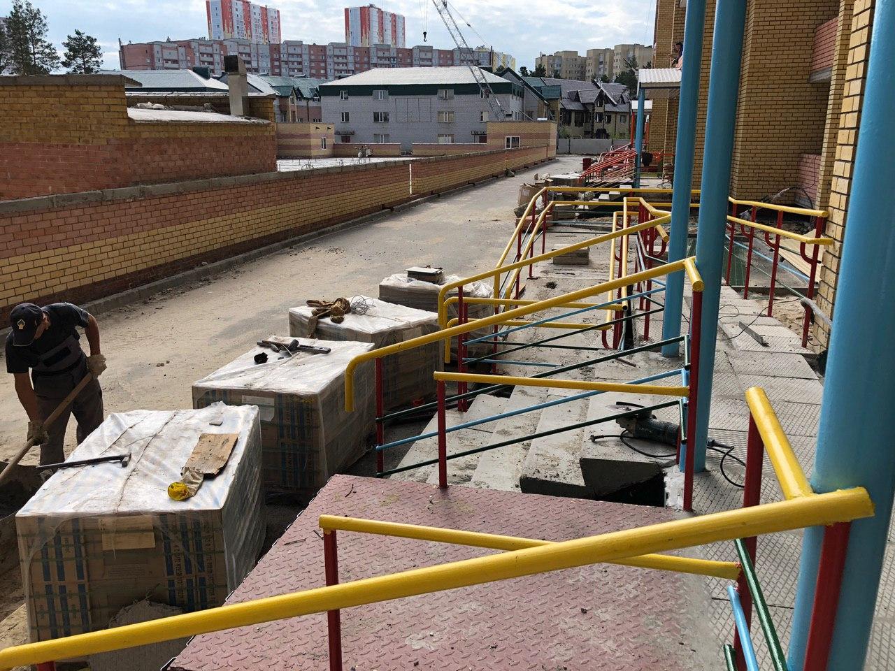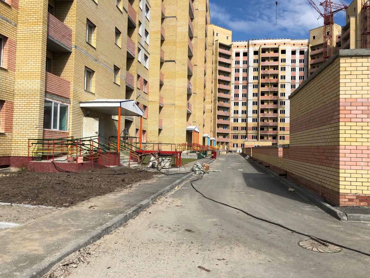 На строительной площадке первых четырех подъездов находятся 4 рабочих.