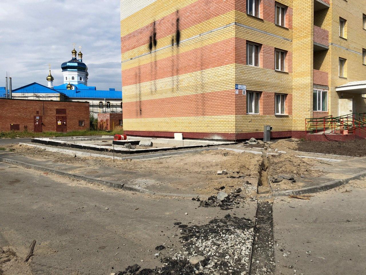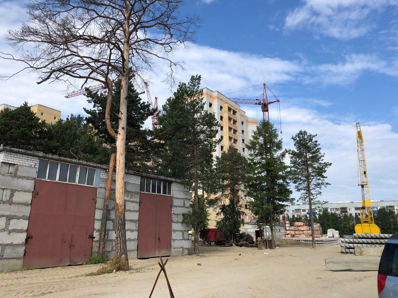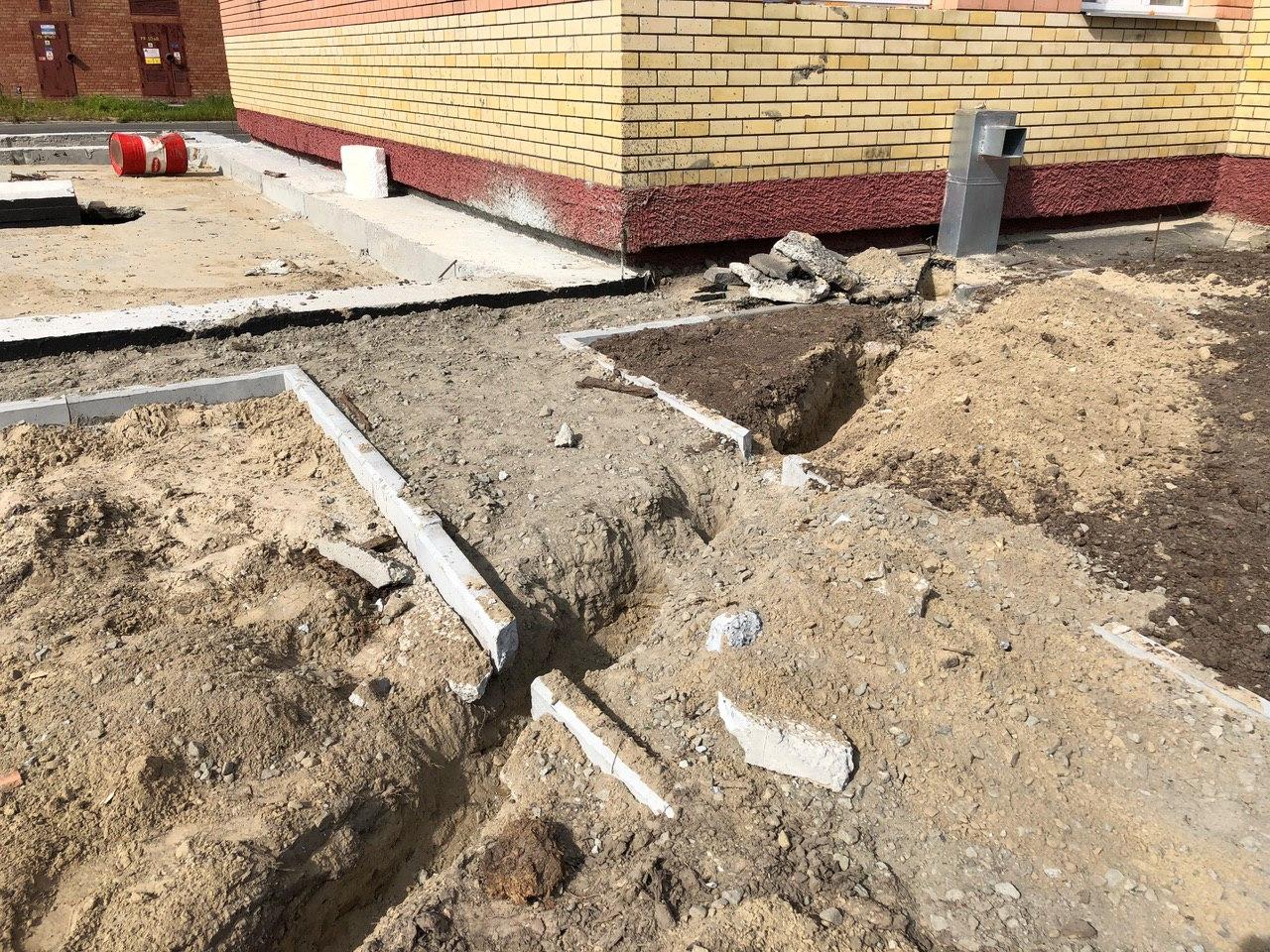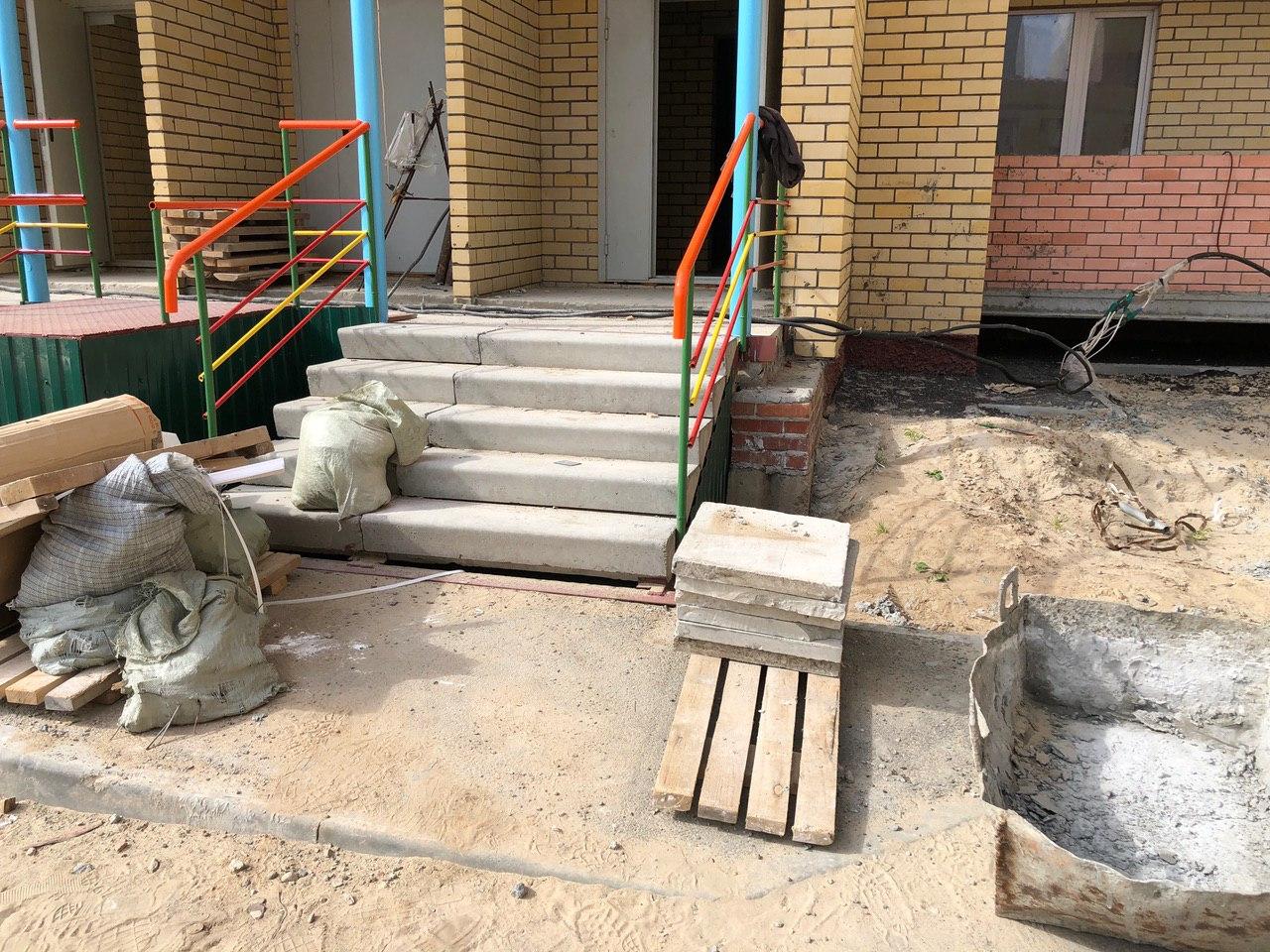 На строительной площадке первых четырех подъездов находятся 4 рабочих.
