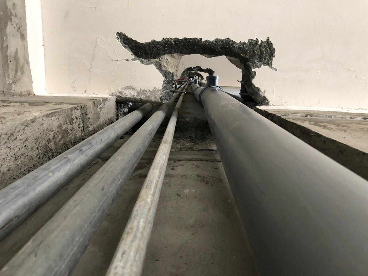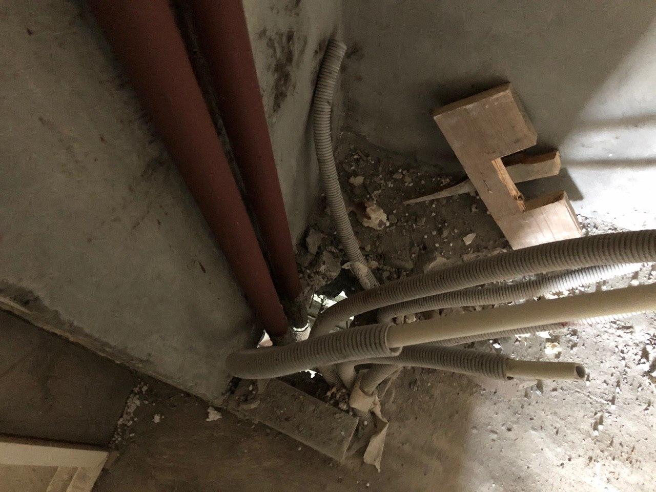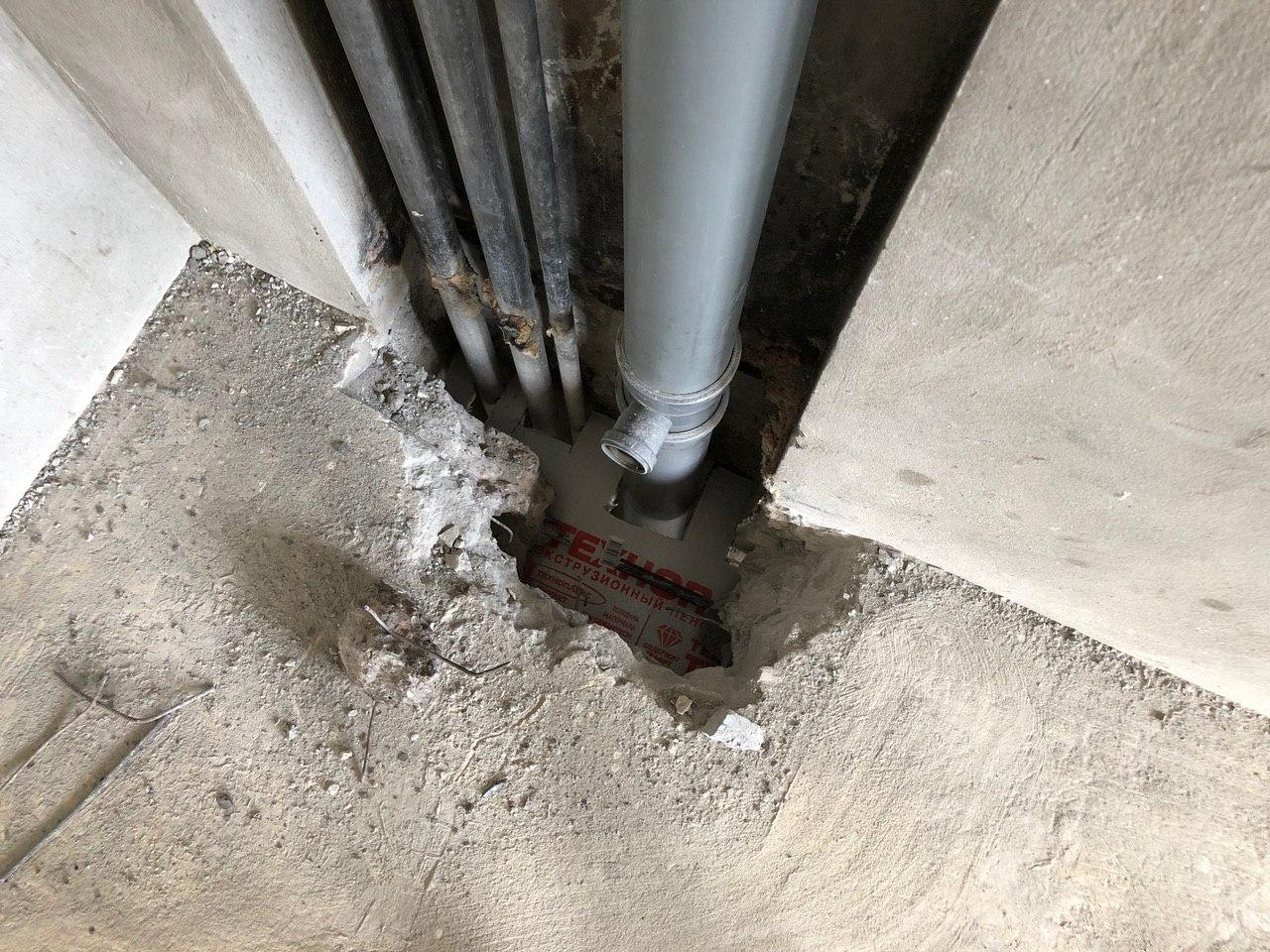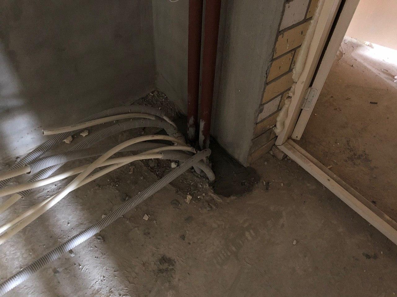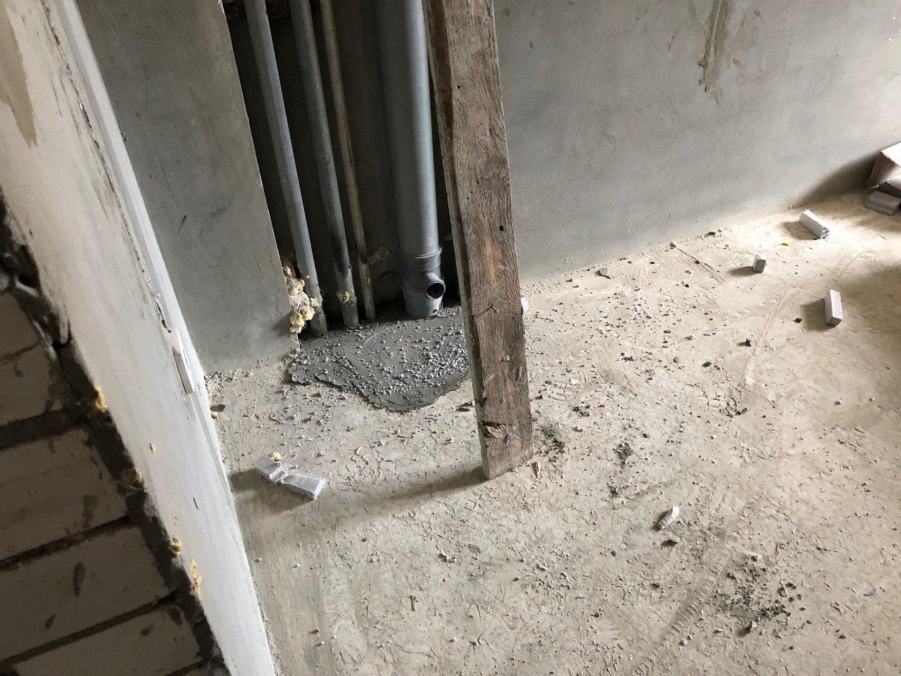 В третьем подъезде ведутся работы по заделке отверстий вокруг стояков водоснабжения и канализации в квартирах в перекрытии второго этажа силами 2 рабочих.