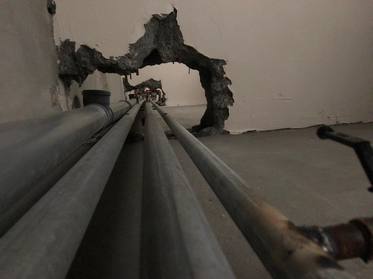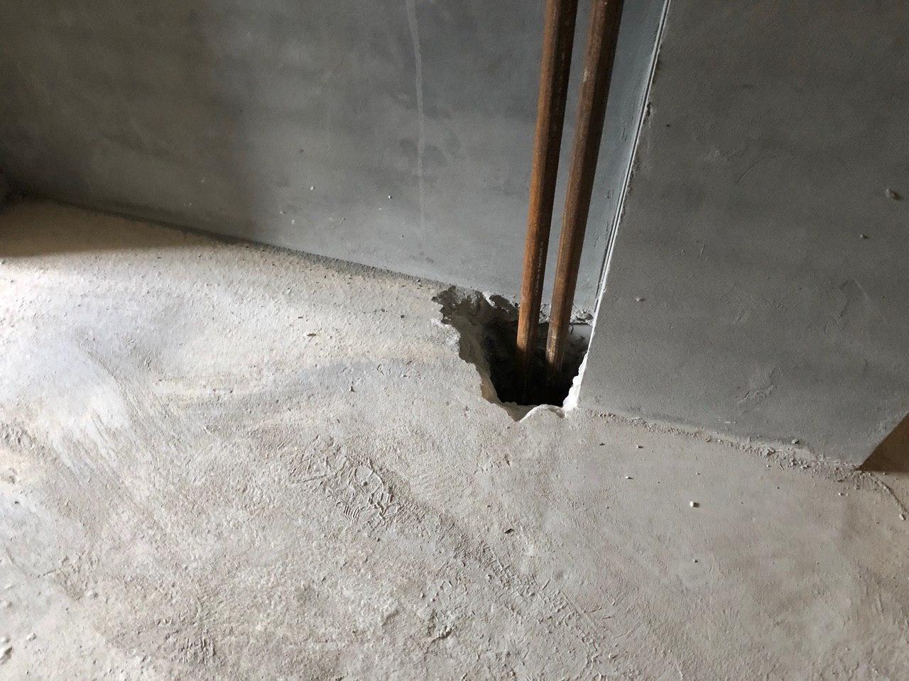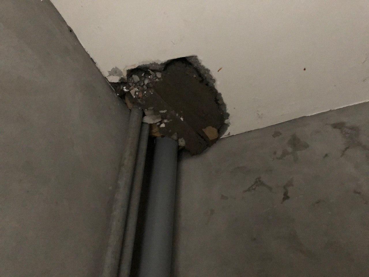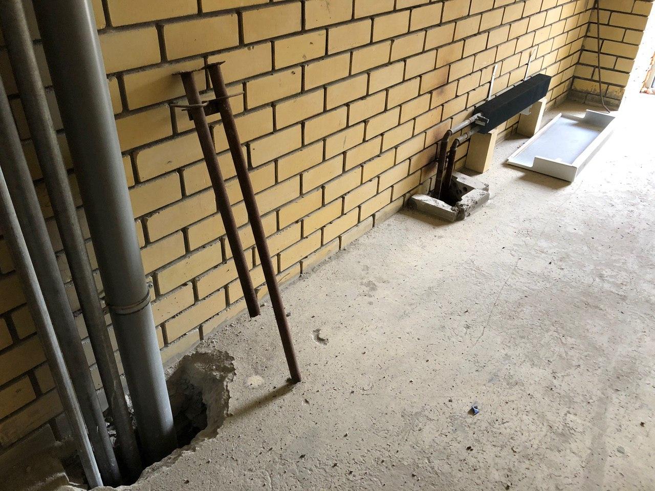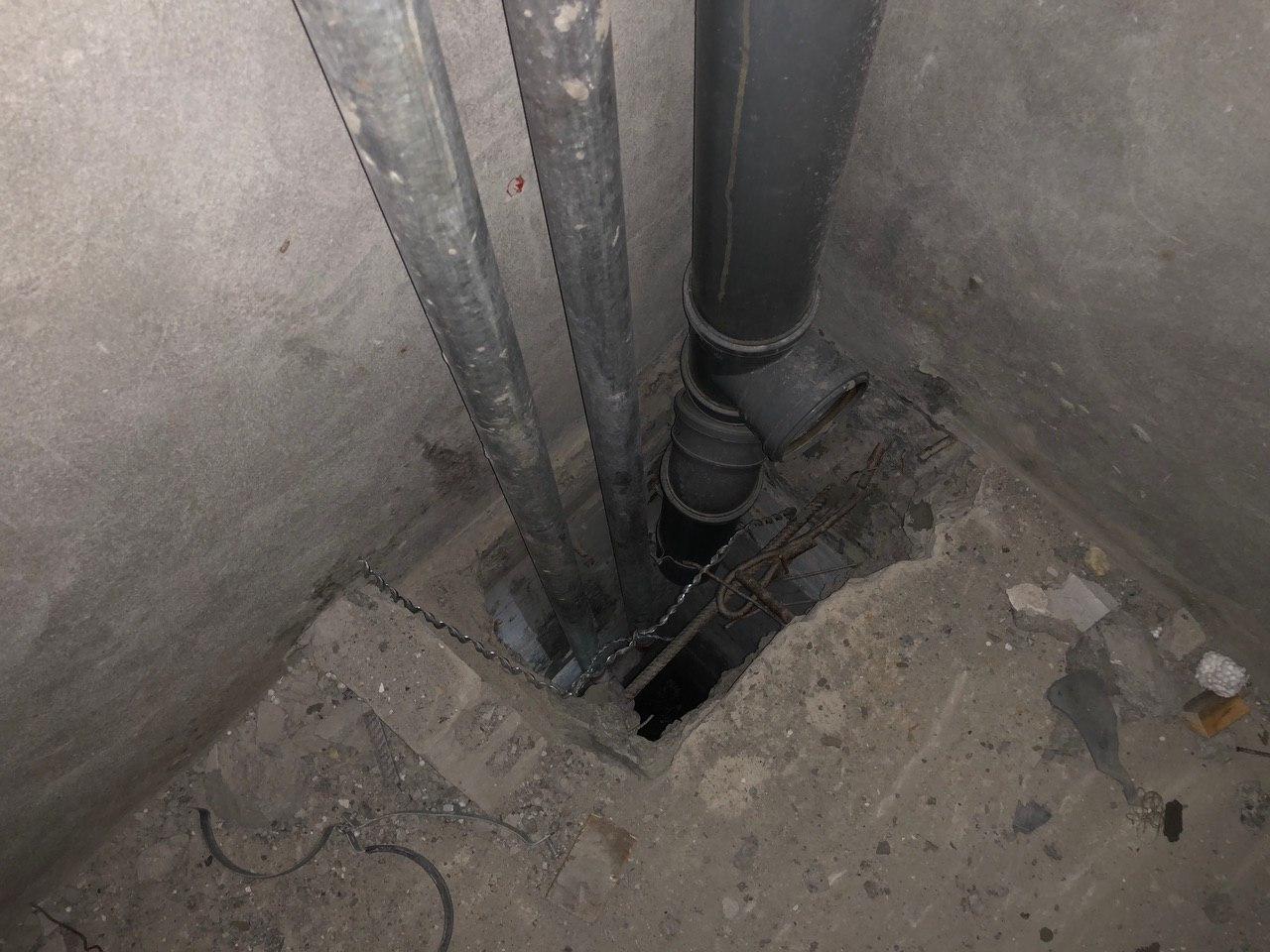 В третьем подъезде ведутся работы по заделке отверстий вокруг стояков водоснабжения и канализации в квартирах в перекрытии второго этажа силами 2 рабочих.