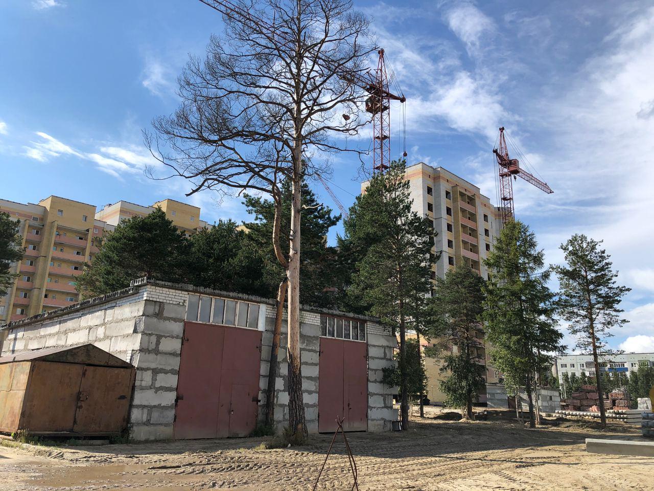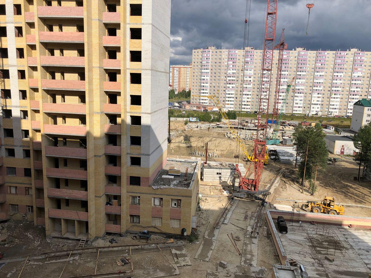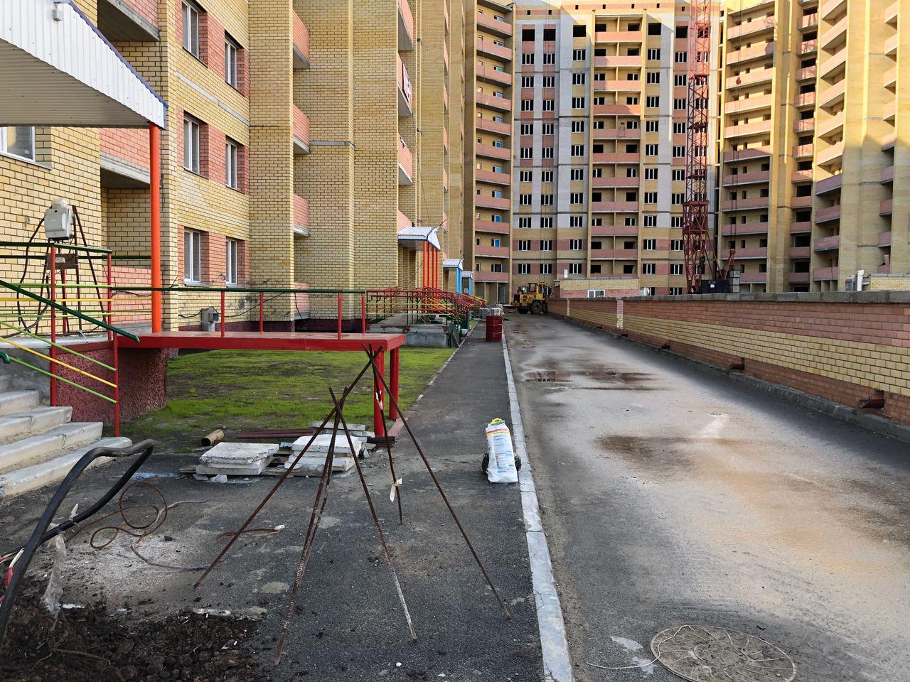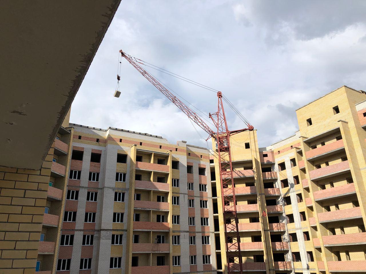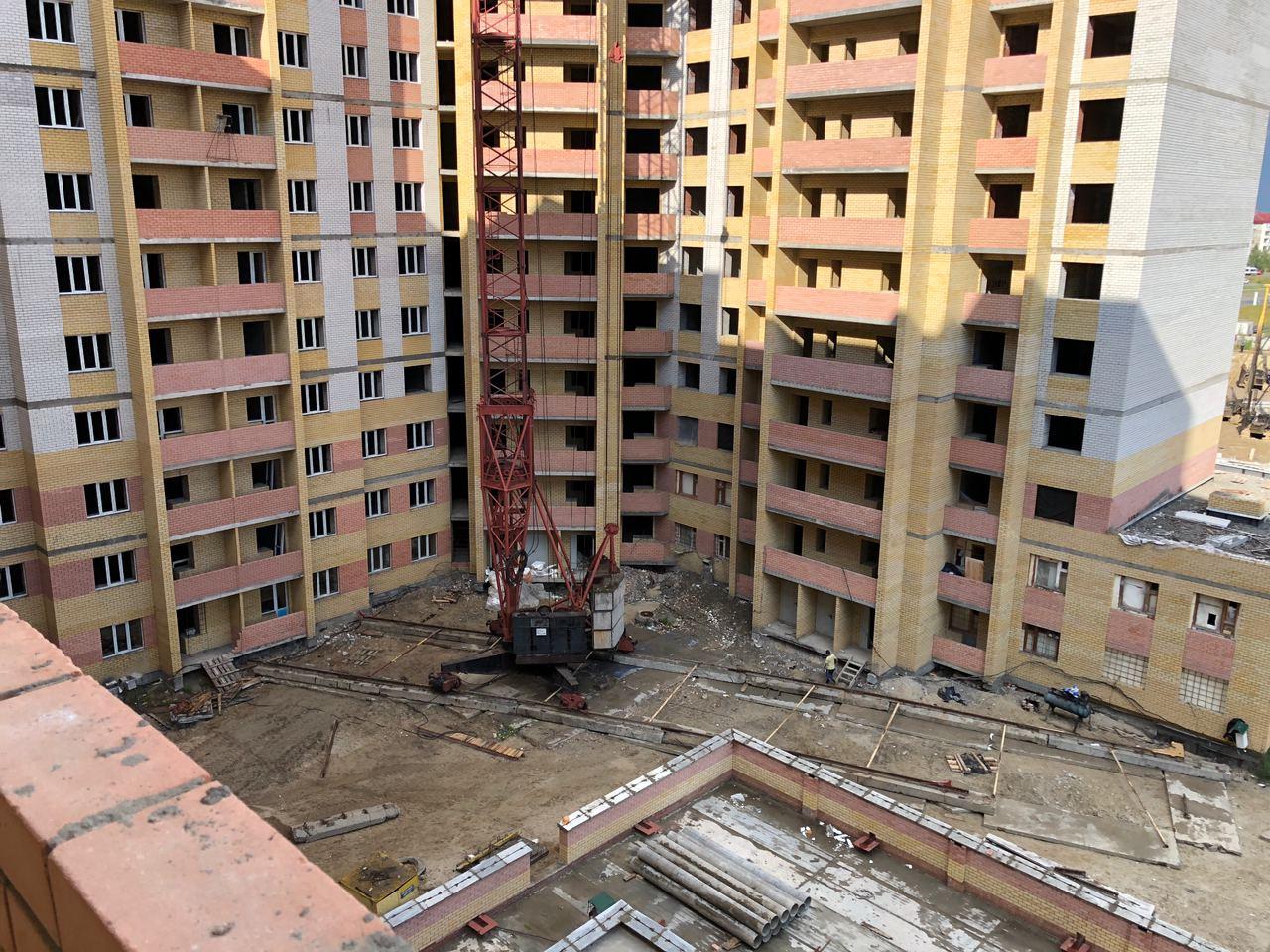 На строительной площадке первых четырех подъездов находятся 8 рабочих.
