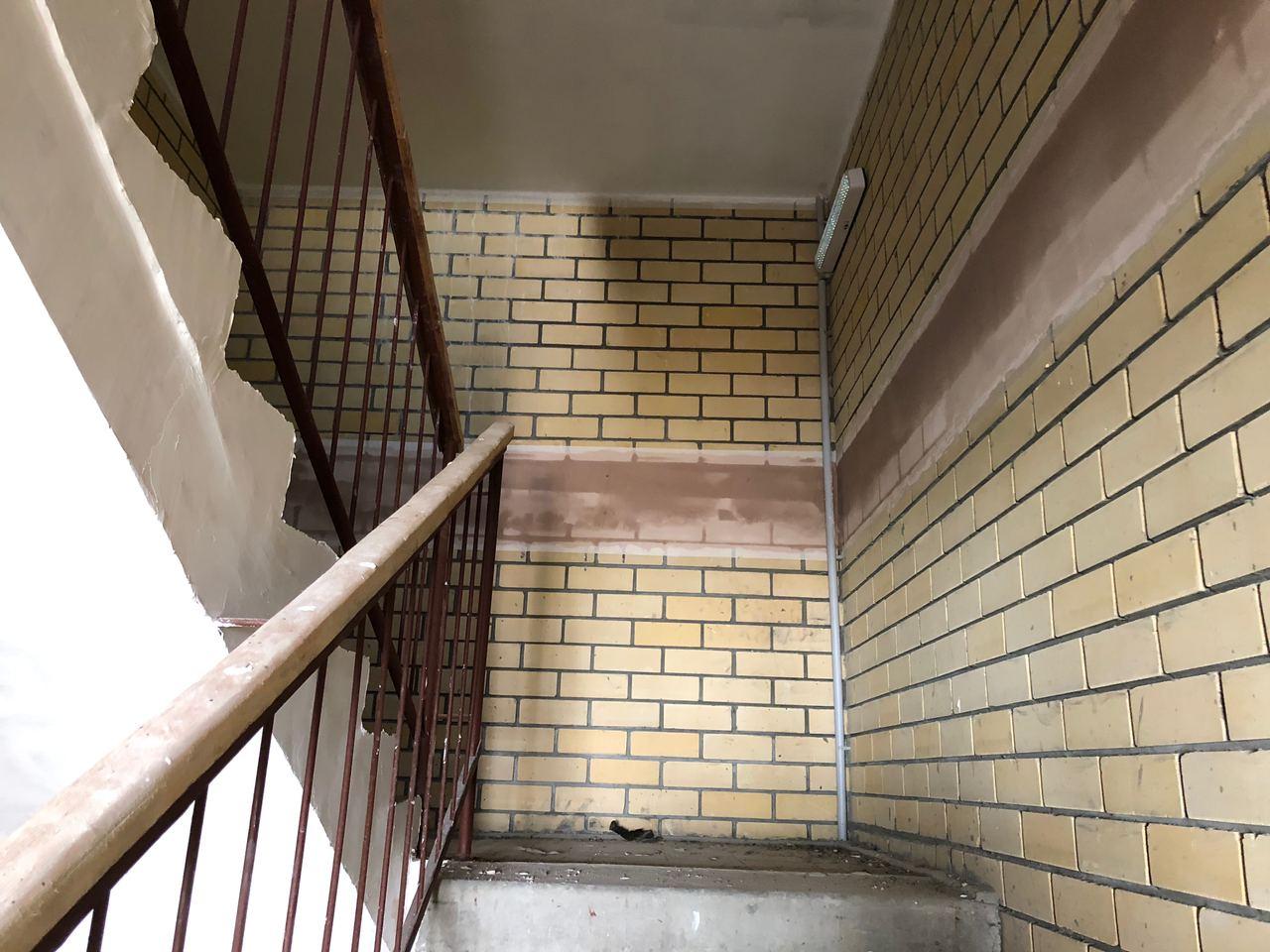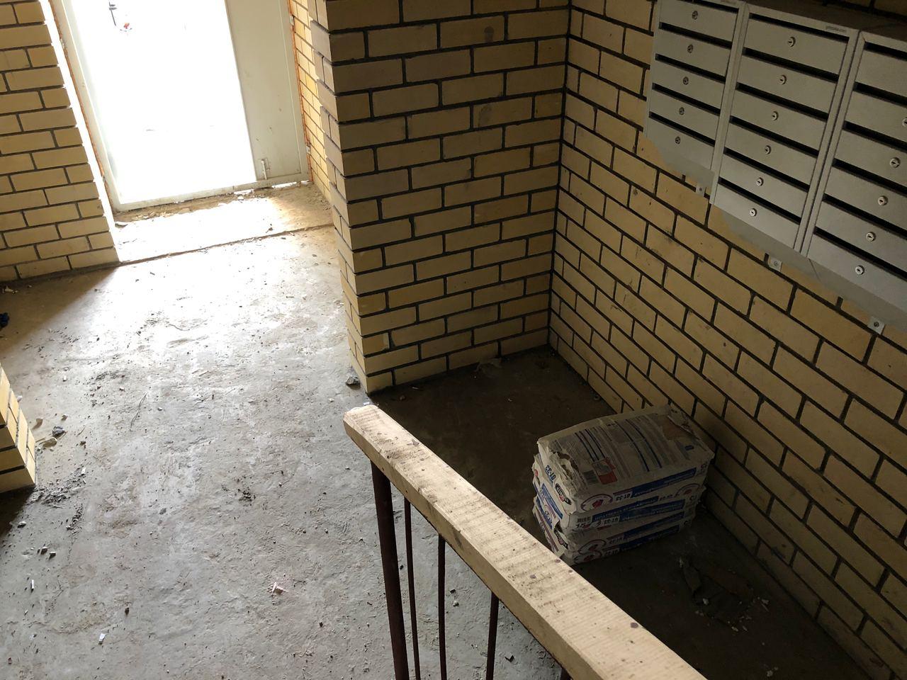 Во втором подъезде работы не ведутся, двери открыты.