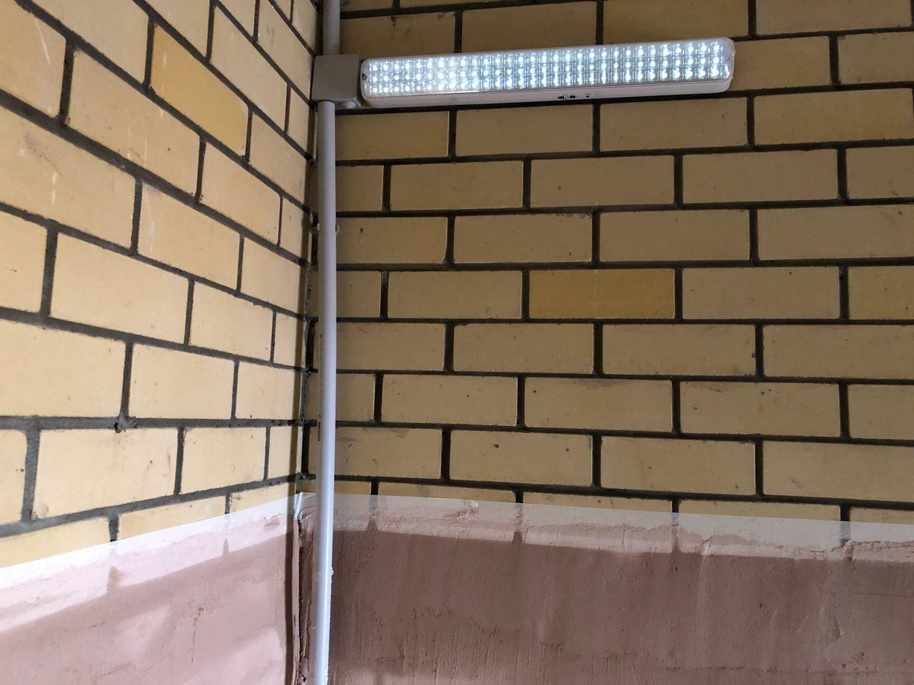 В третьем подъезде ведутся работы по заделке отверстий вокруг стояков водоснабжения и канализации в квартирах в перекрытии шестого этажа, смонтирована «опалубка». Электрики проводят пусконаладочные работы освещения. 2 шуткатура-маляра производят отделочные работы на лестничной клетке.