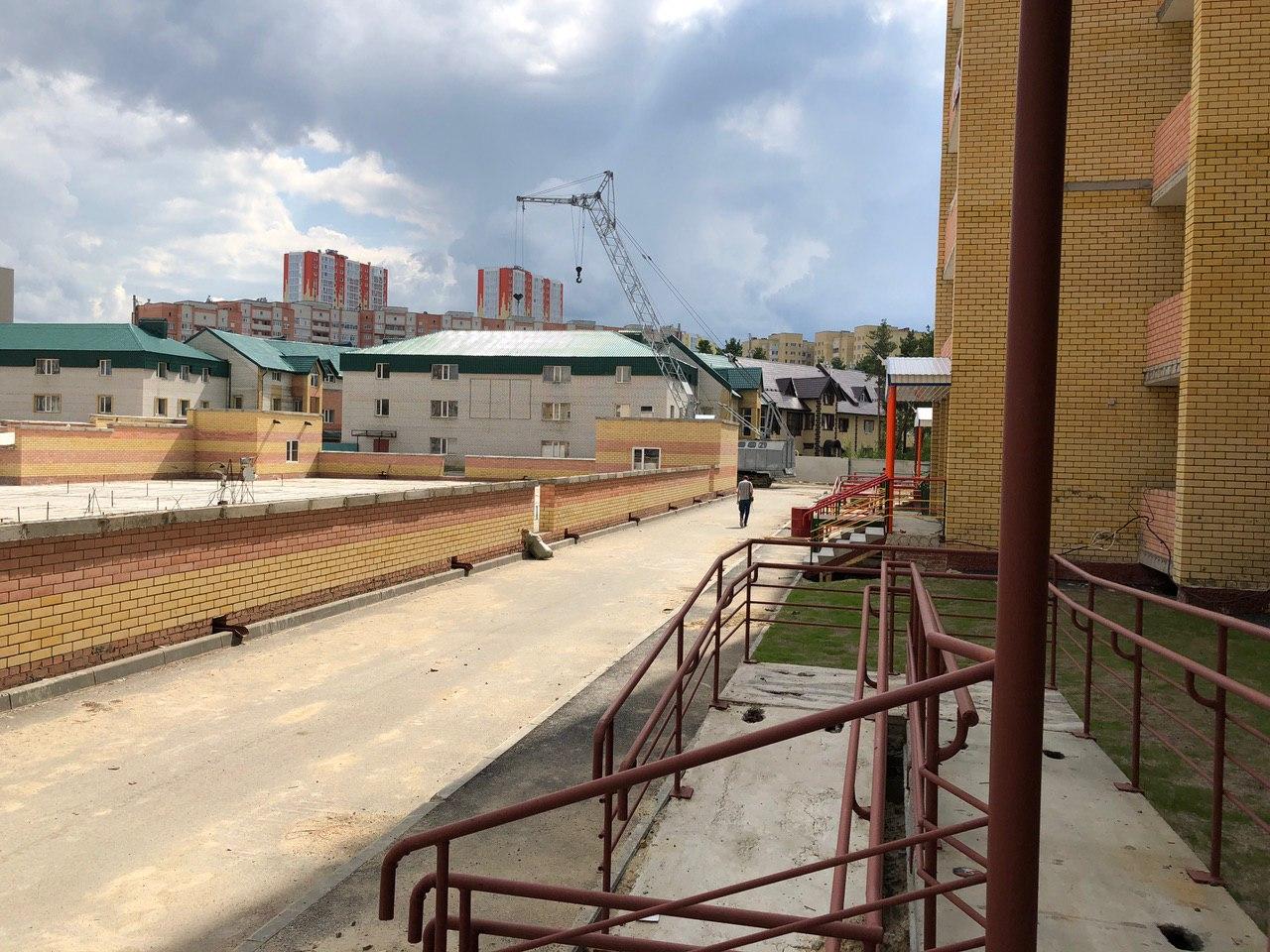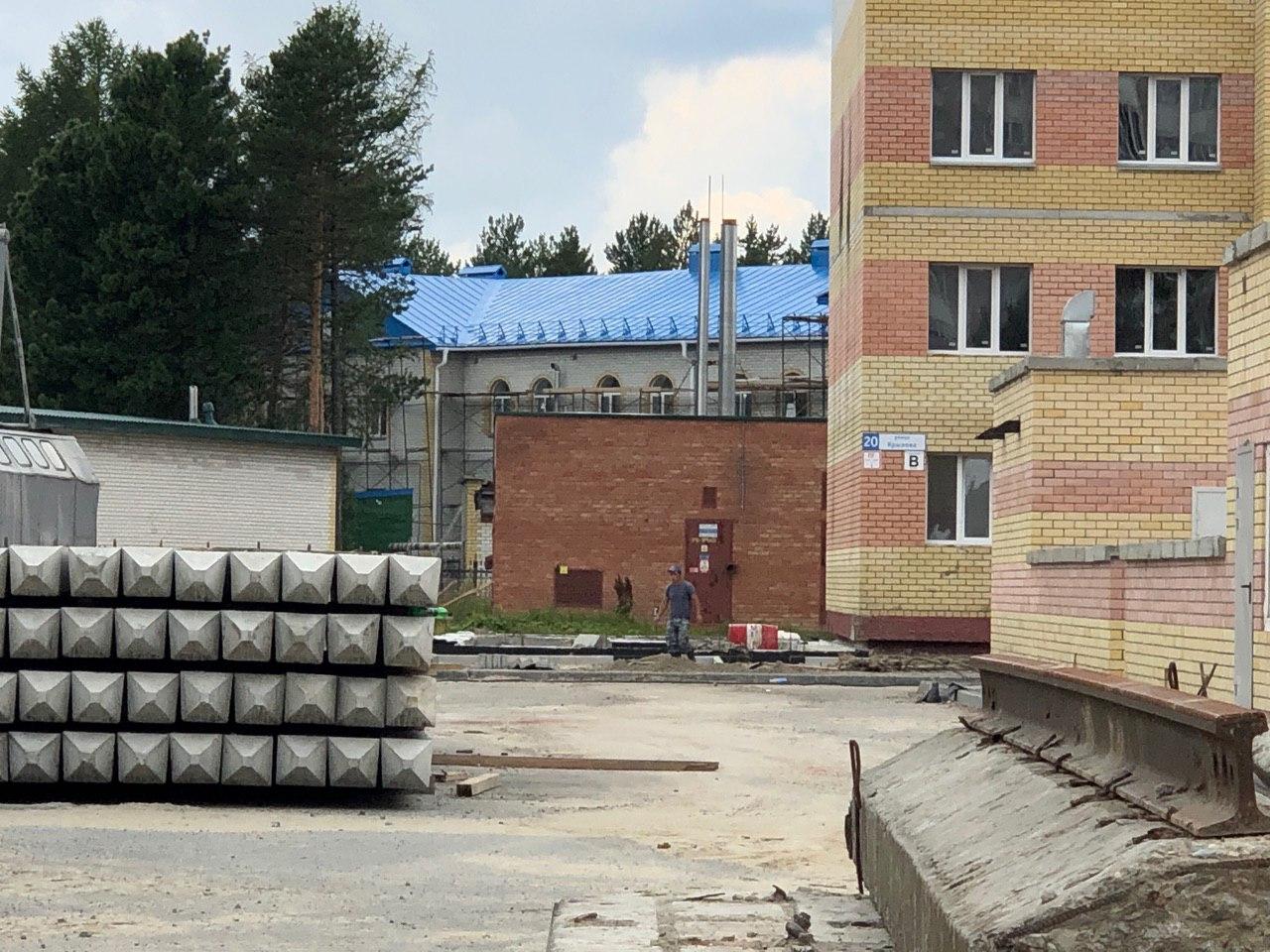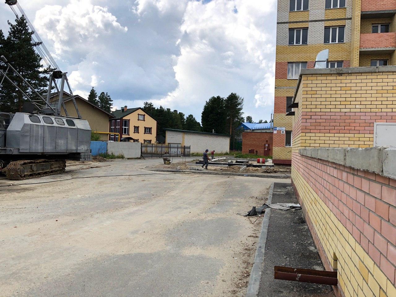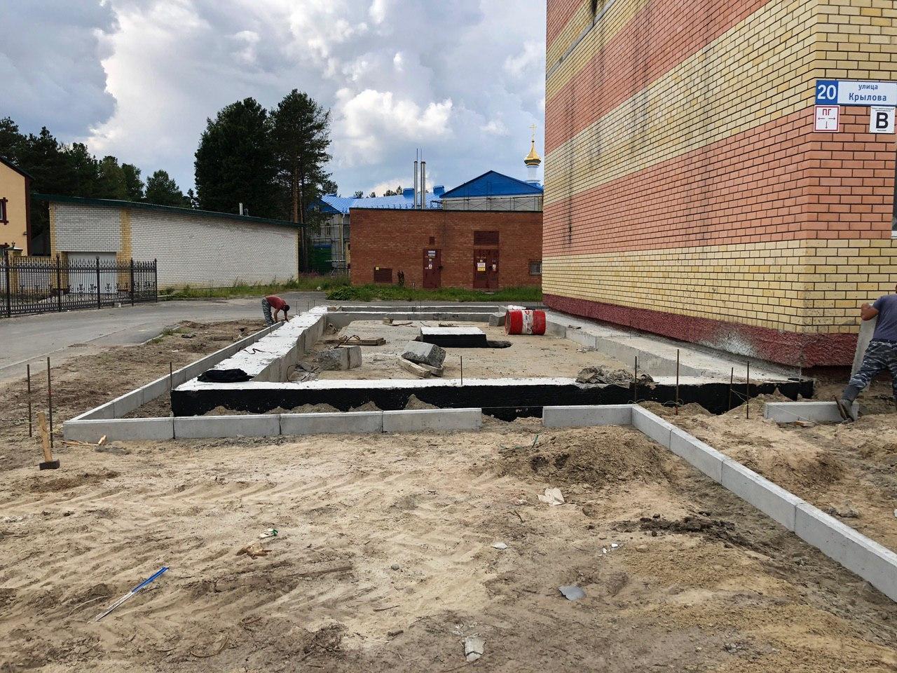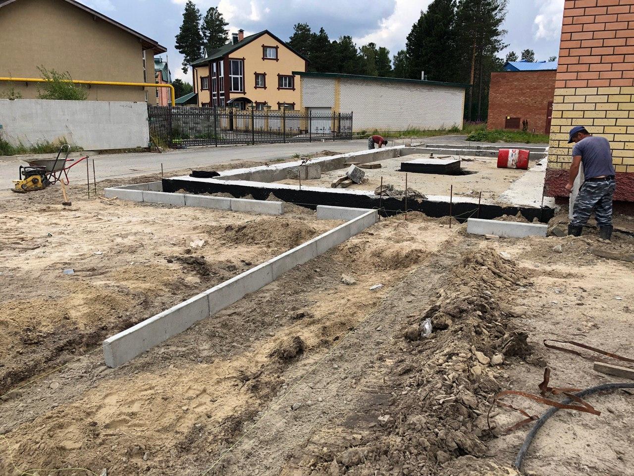 2 работниками ведутся работы по установке бордюрного камня вокруг объекта: «Здание приема посетителей по вопросам предоставления коммунальных услуг», входящего в 4 этап строительства.