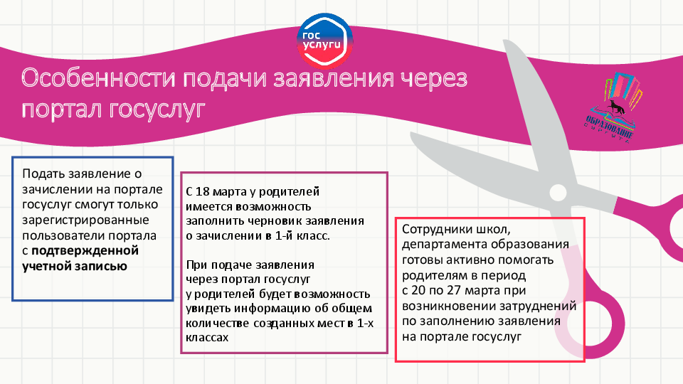 28 марта 2024 года в 8.00 в муниципальных общеобразовательных учреждениях начинается прием заявлений о зачислении в первый класс на 2024/25 учебный год. Предлагаем родителям будущих первоклассников ознакомиться с информацией о порядке приема и рассмотрения заявлений, подготовленной департаментом образования Администрации города.