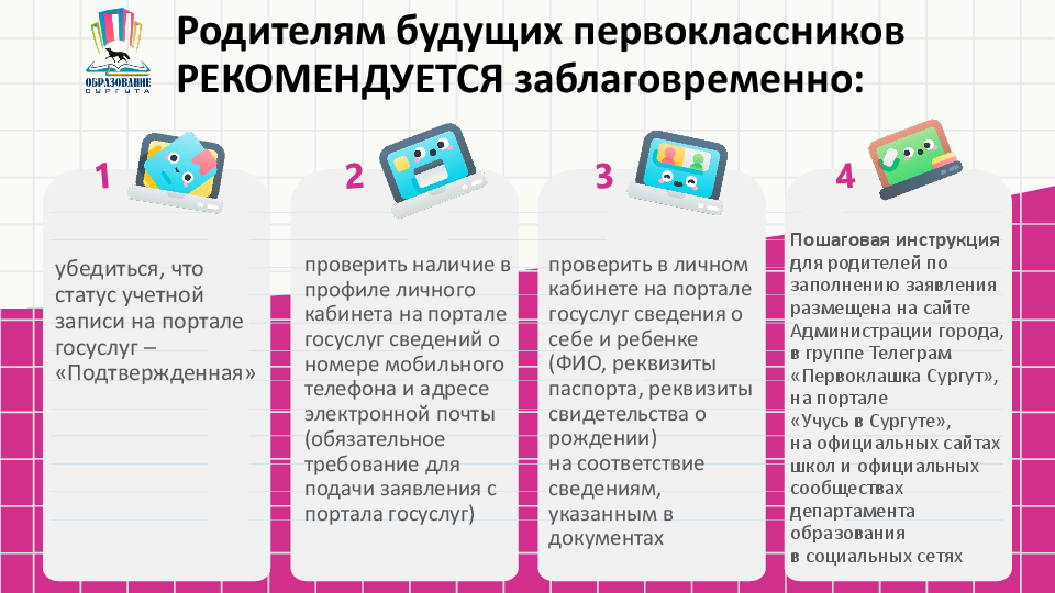 Информация для родителей будущих первоклассников муниципальных общеобразовательных учреждений
