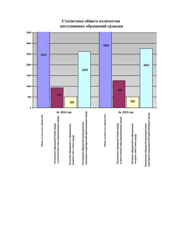 За 2015 год в Администрацию города и ее структурные подразделения поступило 4023 обращений, что на 13% выше по сравнению с аналогичным периодом прошлого года – 3548 обращений.