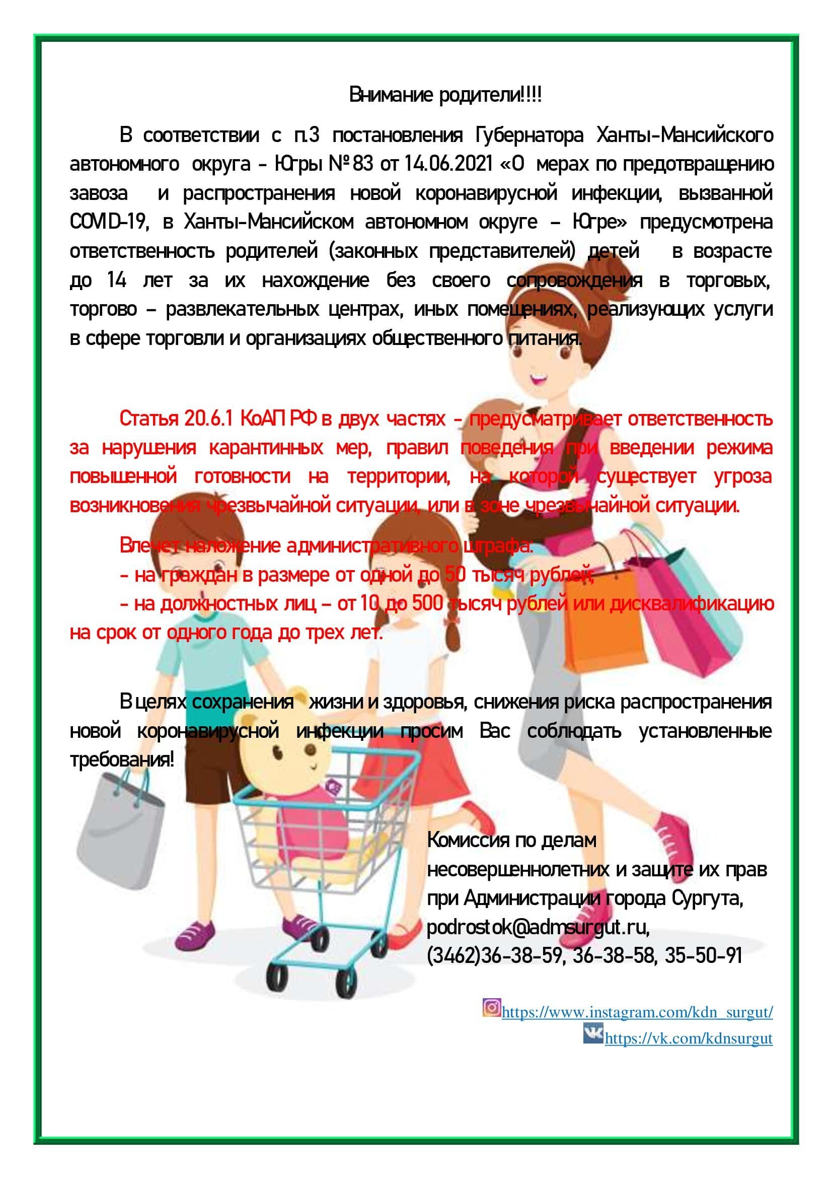 Памятка для родителей по соблюдению мер по предотвращению завоза и распространения короновирусной инфекции