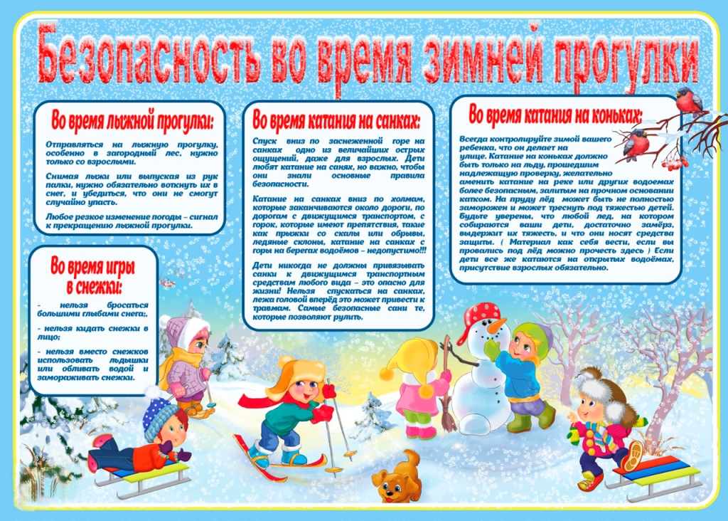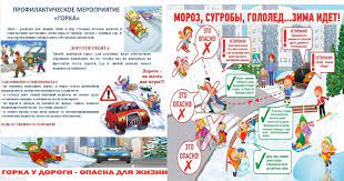 Ежегодно в декабре-феврале увеличивается вероятность дорожных происшествий с участием несовершеннолетних по причинам скатывания детей и подростков с горок и наледей на проезжую часть, использования придорожных снежных валов для игр. В зимний период времени категорически запретите детям кататься с горок вблизи дорог даже внутри дворовых территорий. Не позволяйте детям кататься с таких горок, даже если она заканчивается, по вашему мнению, далеко от дороги. Погодные условия меняются ежедневно, горки могут подтаять, а потом вновь замерзнуть и стать более скользкими, и санки «улетят» дальше, чем нужно. Детская одежда должна быть яркой или иметь светоотражающую полосу и желательно без больших капюшонов, ограничивающих поле зрения. Обувь должна иметь нескользкую, ребристую подошву. Дошкольник зимой должен гулять только в сопровождении взрослых людей.