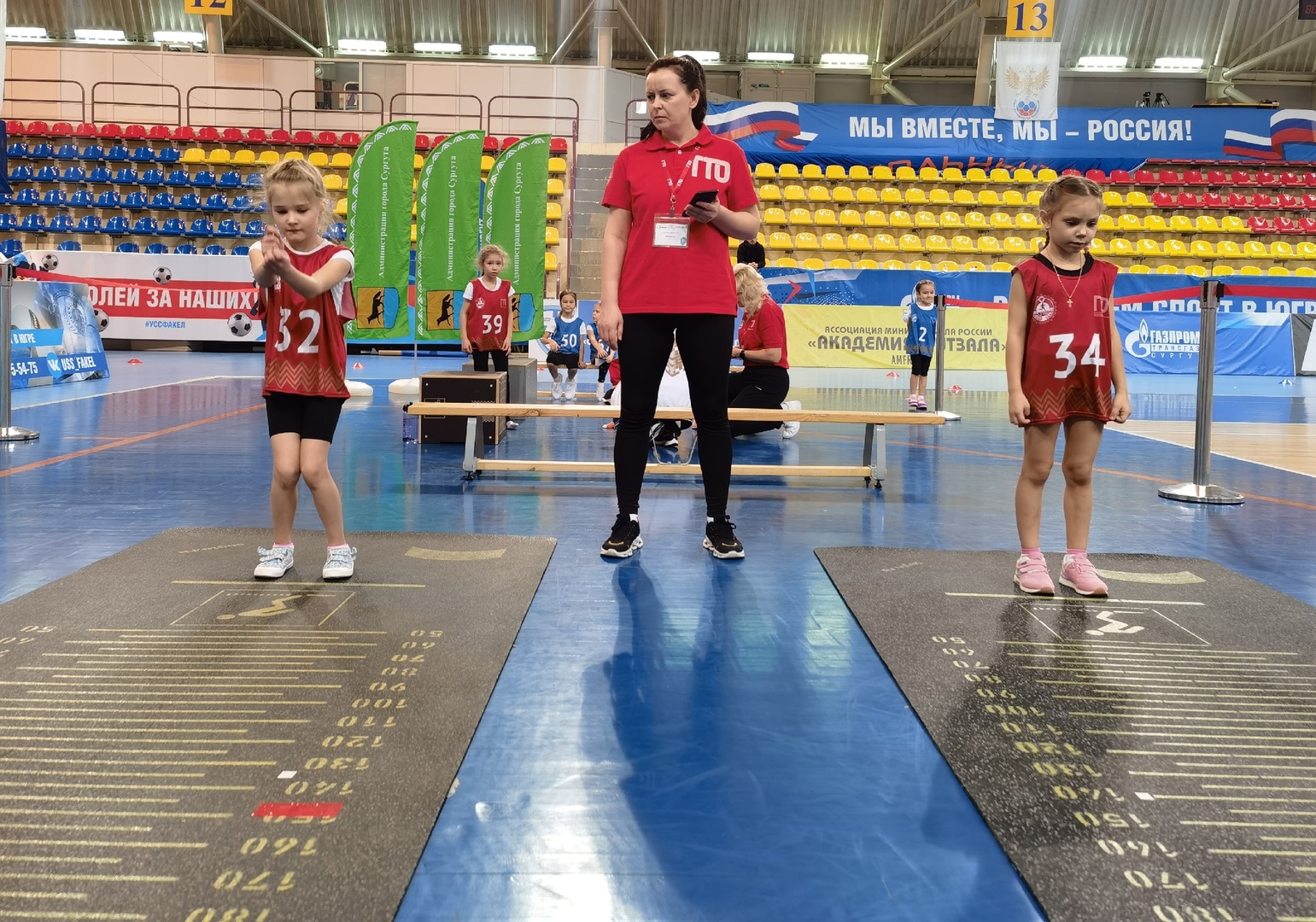 Сначала, как и полагается, ребята разогрелись на музыкальной разминке, а затем настало время испытаний, юным спортсменам предстояло выполнить нормативы по 7 видам: