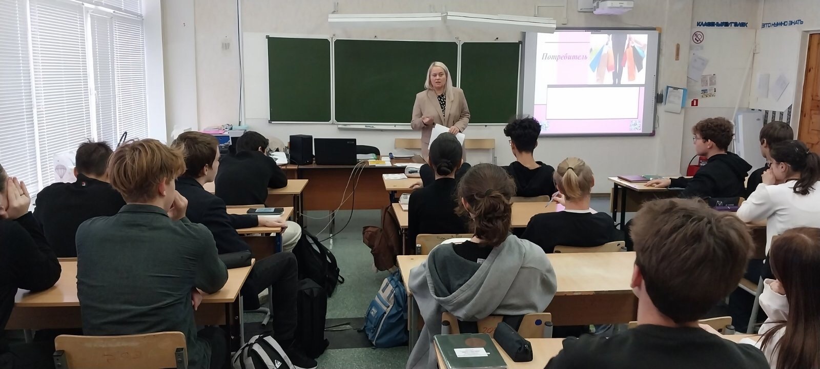 11 октября, в рамках мероприятий, направленных на повышение потребительской грамотности учащихся, проведены тематические уроки по основами законодательства о защите прав потребителей, в том числе практическим аспектам его применения, для учеников 9 Б и 9 Д классов МБОУ СОШ № 26.