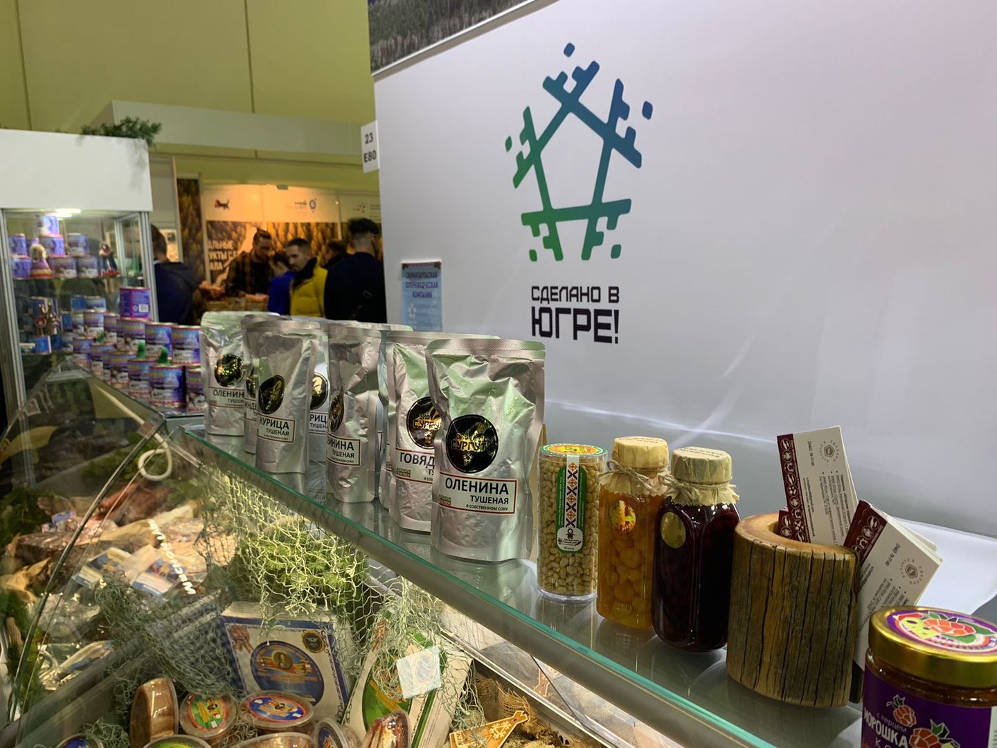 На стенде автономного округа, организованном Фондом развития Югры, представлены колбасные изделия, рыбные консервы, продукция из оленины, грибы, кедровая продукция, кондитерские изделия с добавлением дикоросов, варенье и джемы, иван-чай, а также продукция компаний, которые являются сертифицированными производителями органической продукции.