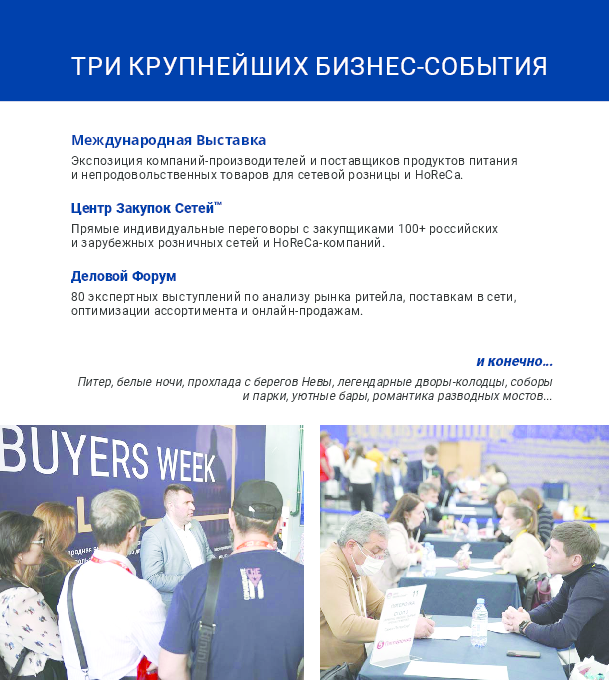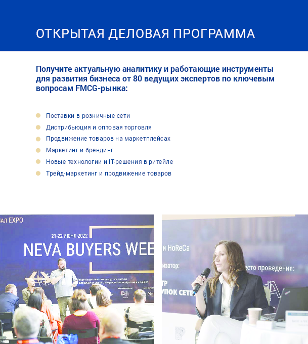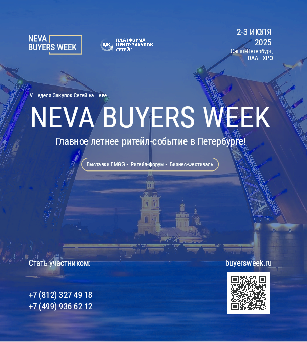 2-3 июля 2025 года в Санкт-Петербурге пройдет V Неделя Закупок Сетей на Неве и Международная выставка продуктов питания и непродовольственных товаров для сетевой розницы и HoReCa NEVA BUYERS WEEK.