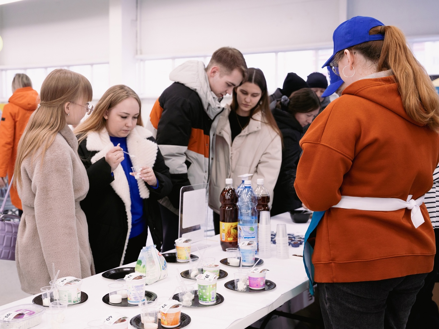 Посетители попробовали прохладительные безалкогольные напитки и кондитерские изделия, а также молочную продукцию и колбасные изделия.