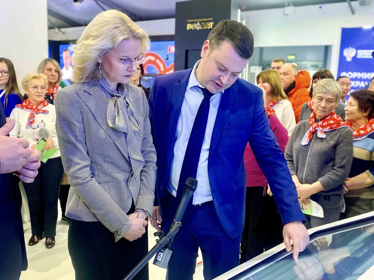 Сергей Чирков продемонстрировал Татьяне Голиковой работу цифровых сервисов Социального фонда на выставке «Россия»