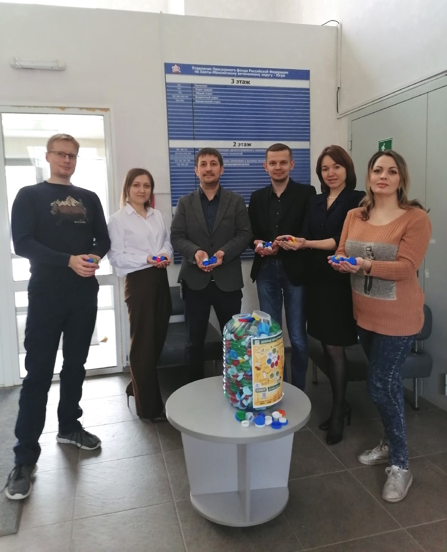 В прошлом году в территориальном управлении ПФР в Ханты-Мансийске установили контейнер для сбора пластиковых крышек. Сегодня сотрудники ОПФР в очередной раз передали наполненную доверху тару кураторам проекта.