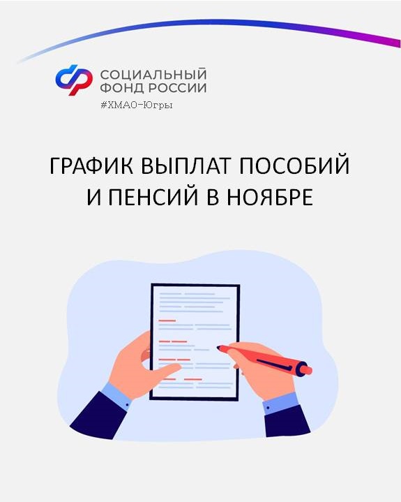 Отделение СФР по ХМАО-Югре доводит до сведения граждан график выплат пенсий и пособий в ноябре 2023 года. Если дата выплаты приходится на выходной или праздничный день, то деньги должны быть переведены заранее.