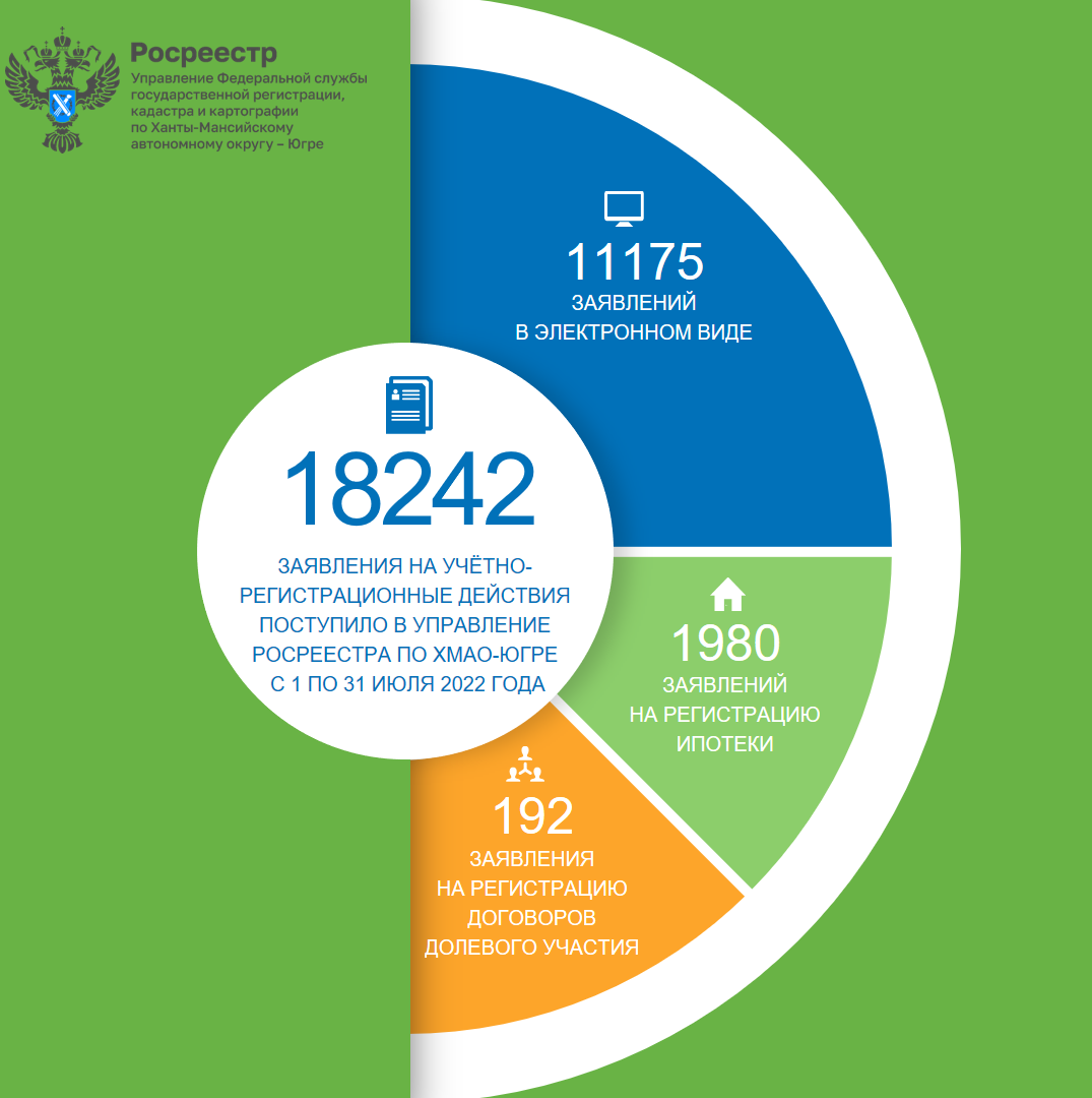 Росреестр Югры информирует о количестве заявлений, поступивших в электронном виде в июле