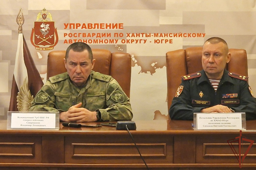 Во время рабочей поездки в Ханты-Мансийск генерал-лейтенант Владимир Спиридонов заслушал доклад начальника Управления Росгвардии по ХМАО – Югре полковника полиции Евгения Симакова о результатах служебно-боевой деятельности за истекший период 2023 года.