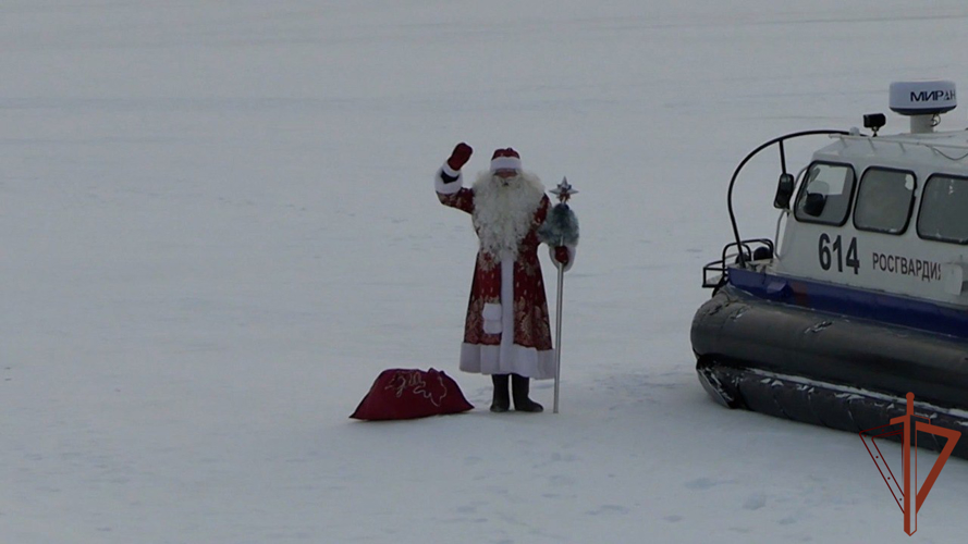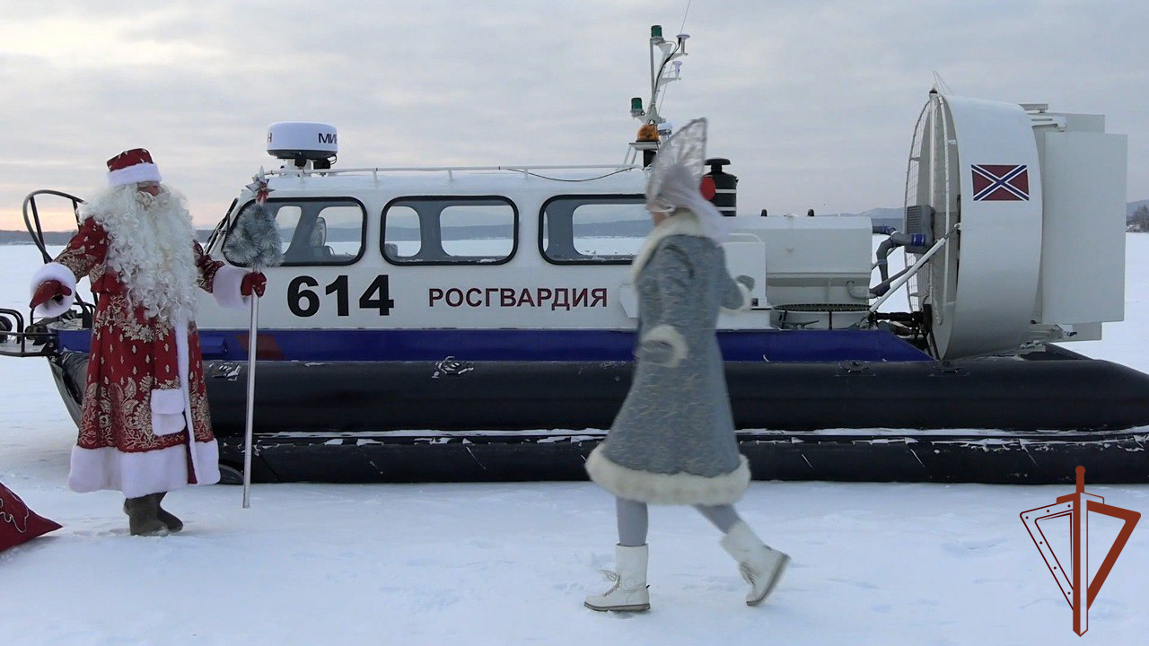 В этом году главные сказочные герои зимнего праздника Дед Мороз и Снегурочка поздравят ребятишек, отправившись к ним в гости на специальном транспорте Росгвардии - катере на воздушной подушке.