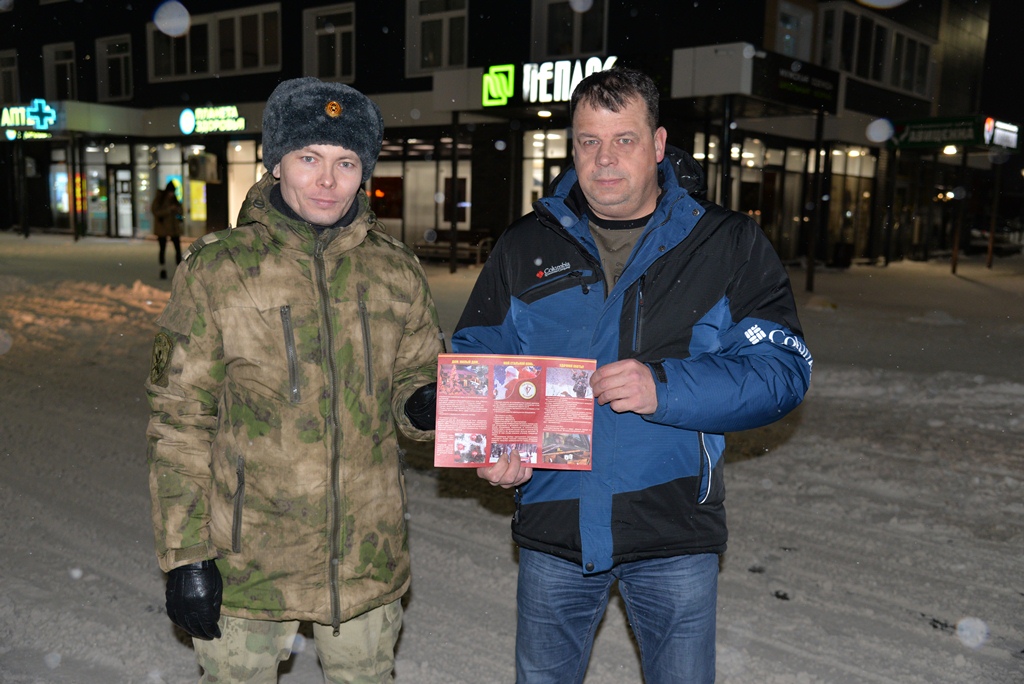 На маршрутах патрулирования, постах охраны порядка и по месту жительства росгвардейцы вручили гражданам тематические буклеты содержащие информацию о порядке действий при возникновении чрезвычайных ситуаций, мерах предосторожности при обращении с пиротехническими изделиями, а также способах защиты своего имущества от преступных посягательств.