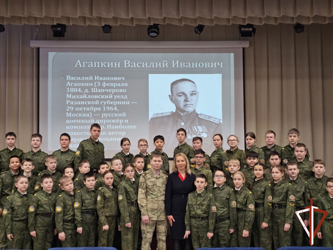 В рамках проекта "Разговоры о важном" военнослужащие и сотрудники Управления Росгвардии по ХМАО – Югре проводят с подшефными школьниками цикл памятных мероприятий, посвященных 140-летию со Дня рождения военного дирижёра, музыканта и композитора Василия Агапкина – автора легендарного марша «Прощание славянки».