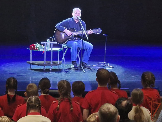 Творческий вечер прошел в формате живого диалога между зрителями и автором. Каждый желающий мог написать вопрос и передать его певцу, и тут же услышать ответ знаменитости. Бард также рассказал, что выступает с концертами перед бойцами на передовой и в районах проведения СВО.