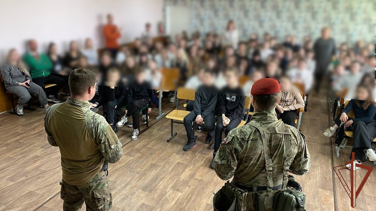 Офицеры спецназа Росгвардии, выполняющие служебно-боевые задачи специальной военной операции в Запорожской области, провели патриотические встречи с учащимися местных школ.