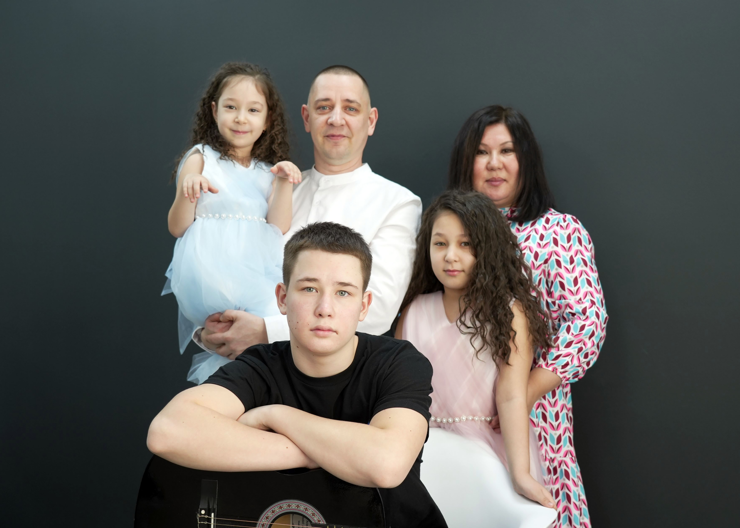 Старший сын офицеров полиции и Росгвардии Александра и Салтанат Захаровых — Ярослав. В свободное от учебы время юноша посещает Школу креативных индустрий, он-то и пригласил родителей с младшими сестрами принять участие в фотопроекте.