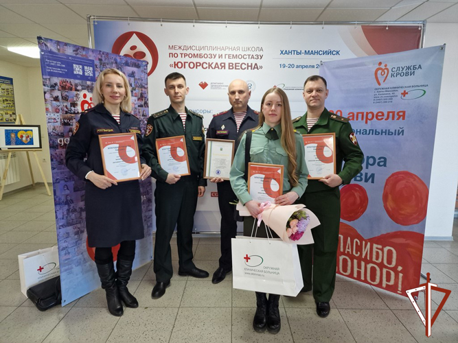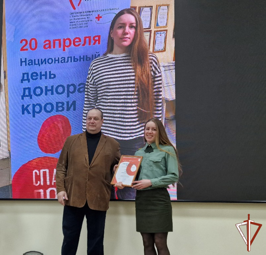 20 апреля в рамках празднования Национального дня донора крови и ее компонентов военнослужащие и сотрудники Управления Росгвардии по ХМАО – Югре были поощрены правами главы г. Ханты-Мансийска Максима Ряшина и главного врача окружной клинической больницы Елены Кутефа.