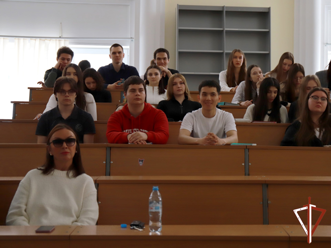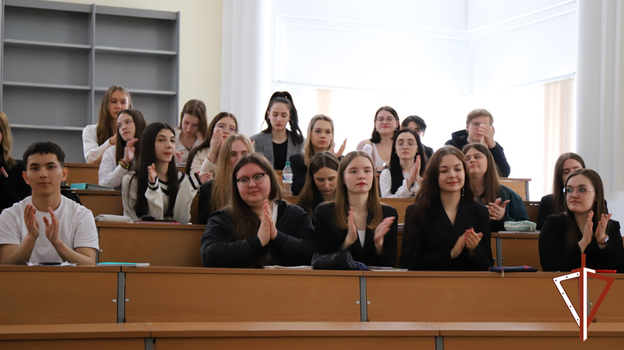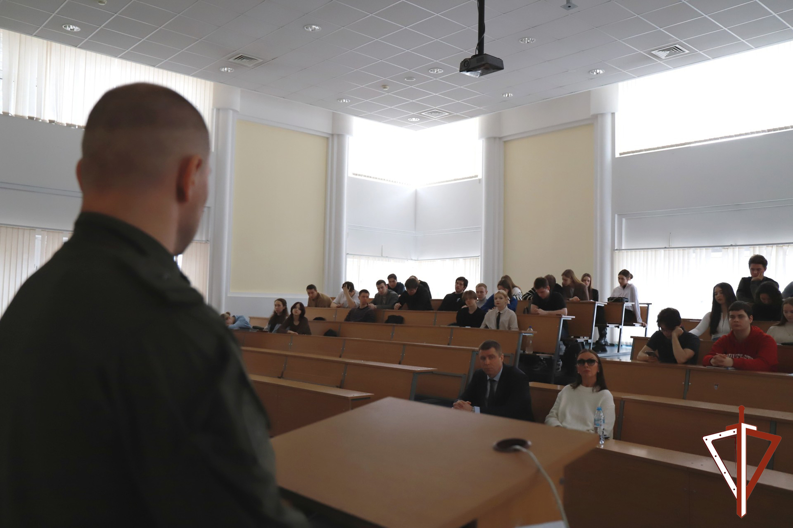 Обладатель одной из высших государственных наград Российской Федерации рассказал будущим юристам о служебных буднях подразделений ведомства в районе проведения специальной военной операции, борьбе с диверсионно-разведывательными группами, экстремизмом и терроризмом, привел истории из служебных будней.